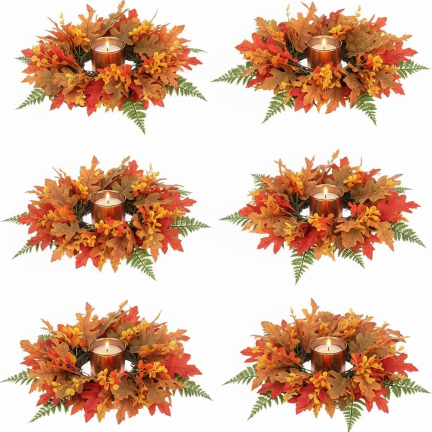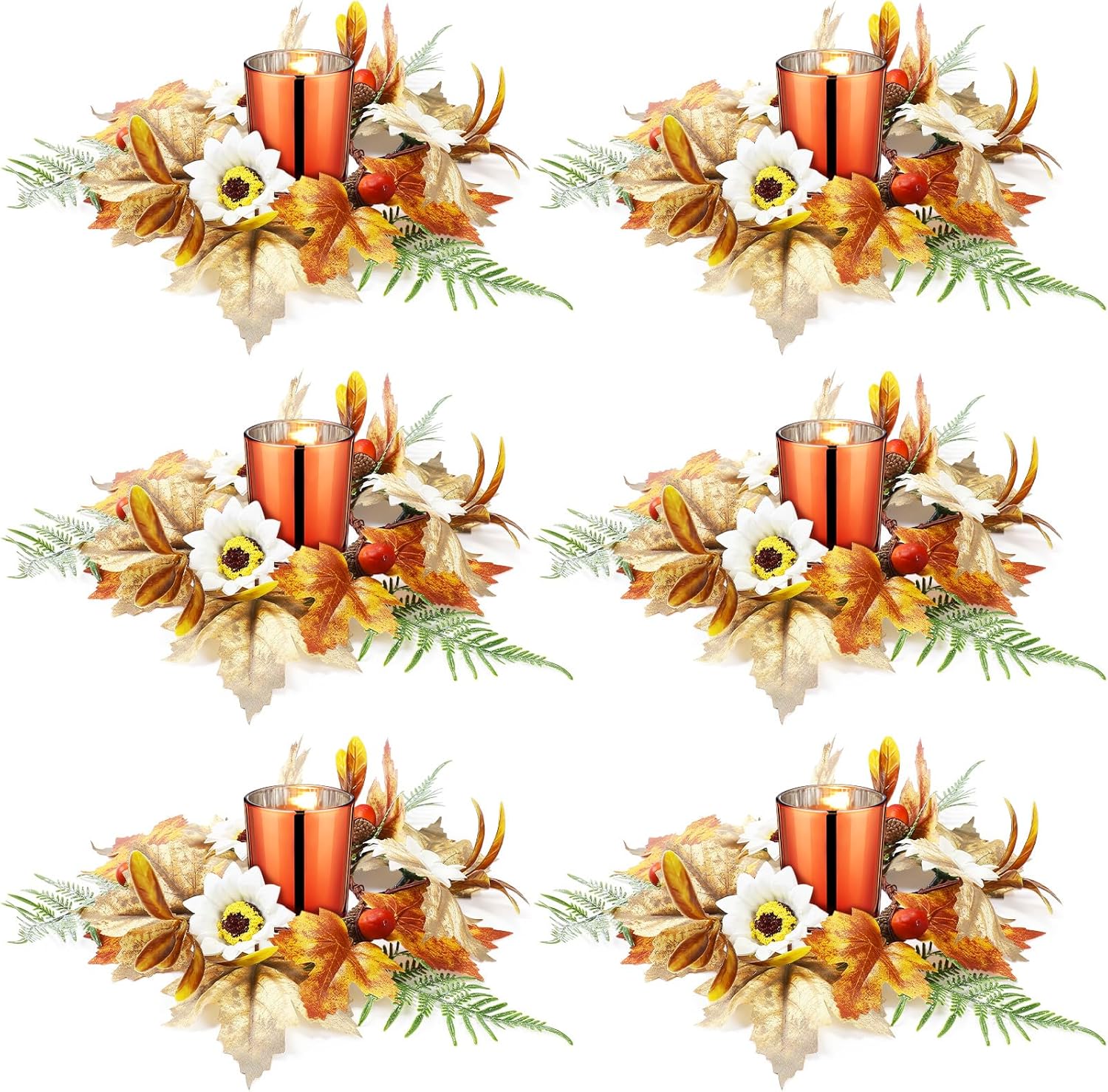 Features: These fall candle holders rings can be applied to decorate your tabletop, shelf, desk, fireplace or other flat surfaces, nice for Thanksgiving dining table autumn decorations or holiday gifts. These votive candle rings can not only decorate candles, but also be suitable for vases and candlesticks, easily livening your home and parties. Specifications: Items: fall votive candle holdersMaterial: glassColor: mainly orangeSize: about 2.64 x 2.17 inches/ 6.7 x 5.5 cmItems: autumn candle ringsColor: mainly orangeSize: about 2.36-2.76 inches/ 6-7 cm in inner diameterPackage includes: 6 x Fall votive candle holders6 x Autumn candle ringsNotes: Manual measurement, please allow slight errors on size. The color may exist a slight difference due to different screen displays.