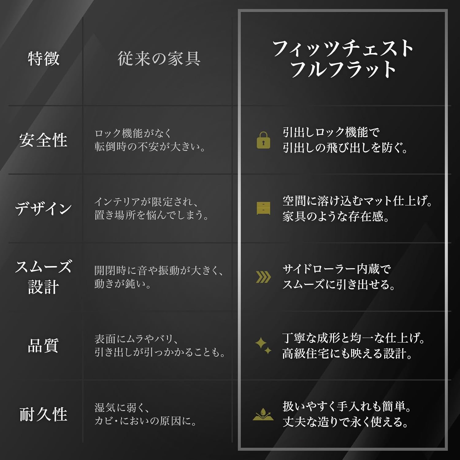 Refreshes Fitz Plus! Environmentally friendly TSPP compliant product. Full flat front panel for added decor Stain resistant and easy to clean. It has an easy lock function, smooth drawers and features of Fitz Plus and is easy to use. Can be installed with "Easy Cleaning Legs" and "Insertion Caster 40" sold separately