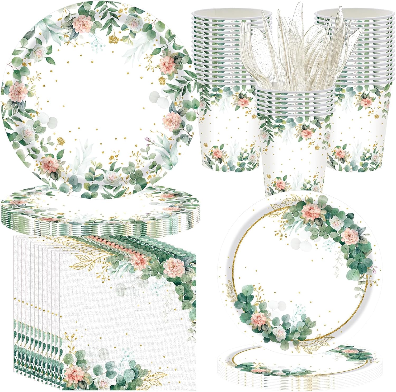 Features: Memorable party favor gifts: Make a lasting impression on your guests with disposable plates and other dinnerware. They are not just practical, they are also charming keepsakes for your guests to remember the special occasion. Decorating your event with these unforgettable gifts. Easy to match: The sage green supplies are versatile and can blend easily with a variety of party themes. Whether you are hosting a birthday party, eucalyptus themed party, graduation celebration, or a casual gathering, these favors will complement your decorations properly. Specifications: Material: Plates: paper Cups: paper Napkins: paper Spoons: plastic Forks: plastic Knives: plastic Color: green, white Size: Paper plates: about 7 inches and 9 inches Cups: about 9 oz Napkins: about 12.99 x 12.99 inches/ 33 x 33 cm Package includes: 100 x Plates 50 x Cups 100 x Napkins 50 x Spoons 50 x Forks 50 x Knives Notes: Manual measurement, please allow slight errors on size. The color may exist a slight difference due to different screen displays