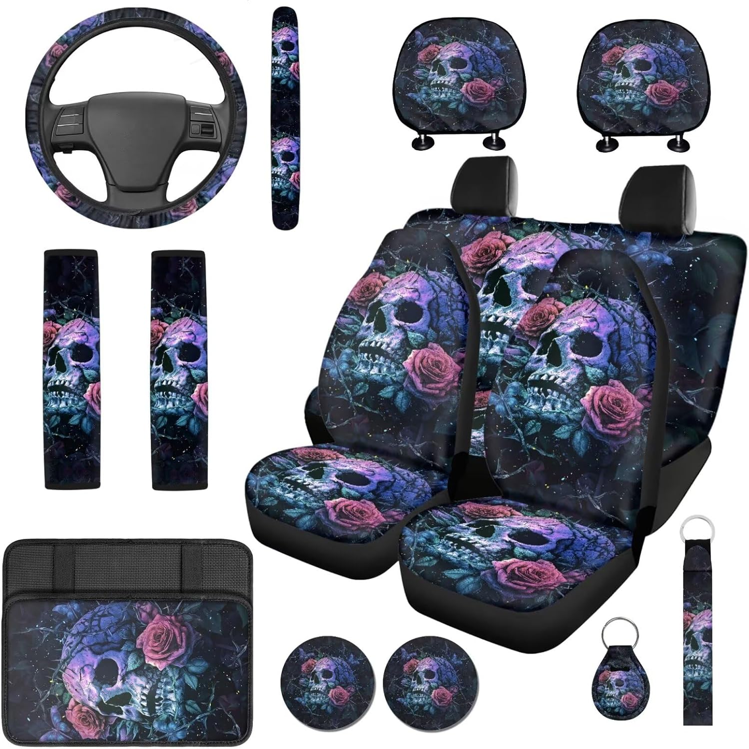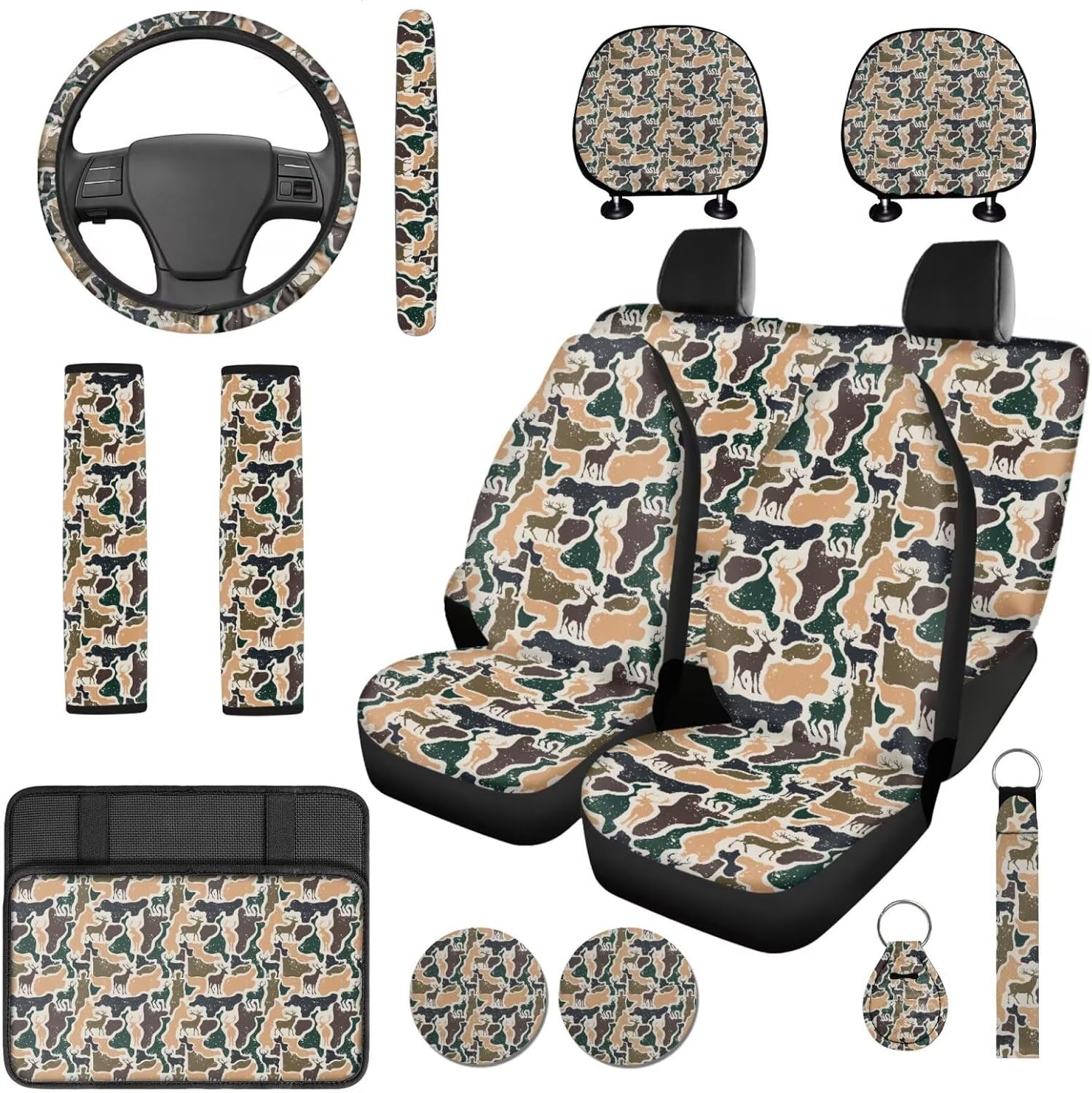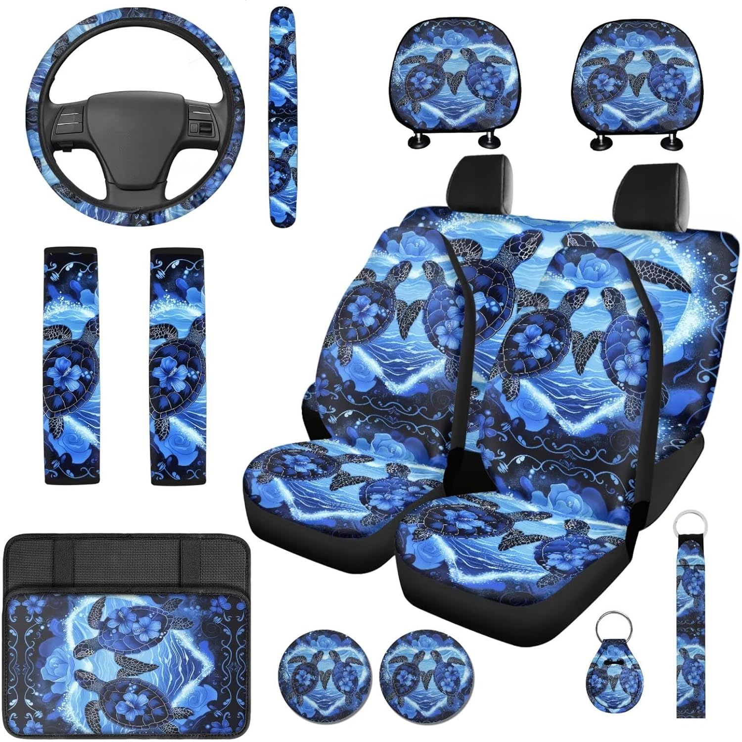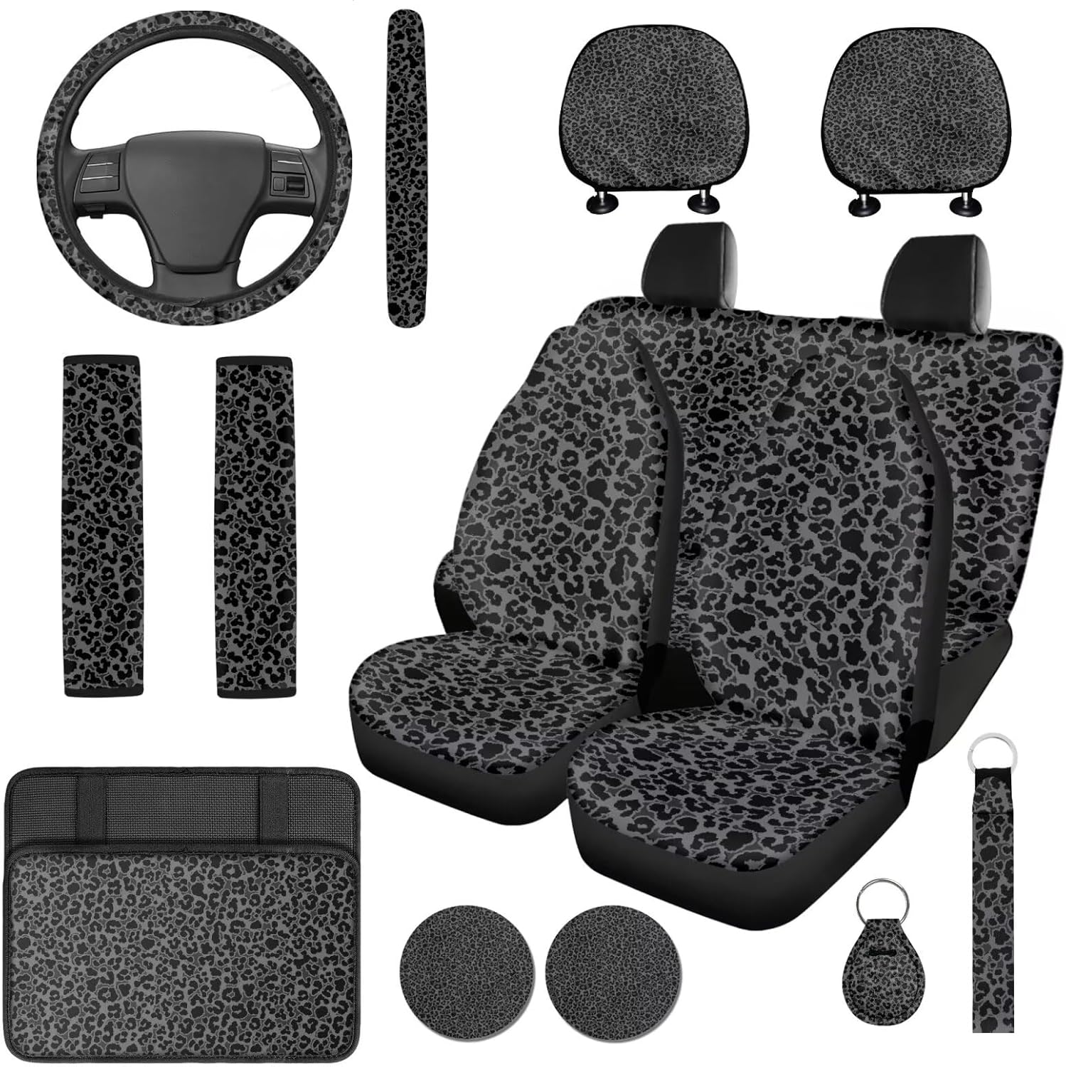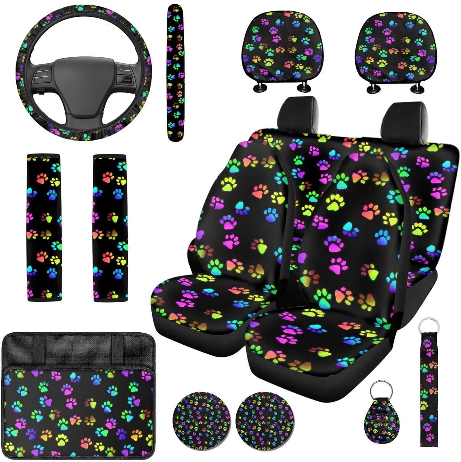 Our car front and rear cushion covers, car steering wheel covers, car coasters, car headrest cushions, car armrest cushions, car keychains, car seat belt covers are made of high quality polyester, breathable and comfortable Personalized cushion covers include, 2 front seat covers, 2 rear seat covers, 1 steering wheel cover, 2 cup cushions, 2 headrest cushions, 1 armrest cushion, 2 key fobs, and 2 seatbelt covers, for a total of 14 pieces Our seat covers are universal fit car seat cover will stretch to fit most car and suv bucket style seats Fits most vehicles- Cars, Trunks, Vans, SUV; Premium design and construction for durability with stretch seat backing for snug, no slip fit and complete finish look Car kits are easy to install, you don't need any extra tools, stretch them to the right size and slip them over various parts of your car to ensure a perfect fit for your car, easily add style to your car's interior personalize it Whether you want to protect your brand new seats or refresh your old ones, our seat cover is the perfect solution. It has excellent waterproofing properties to protect your car's front seats from rain, sweat, stains, spills, pet hair, dander, dirt,,, tears and more