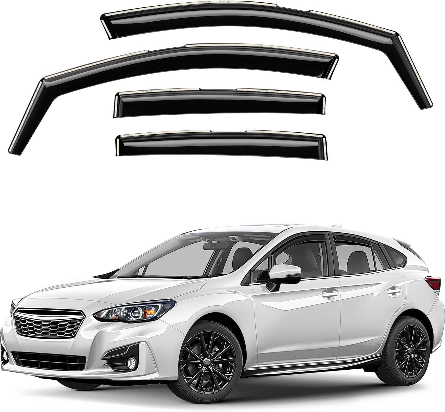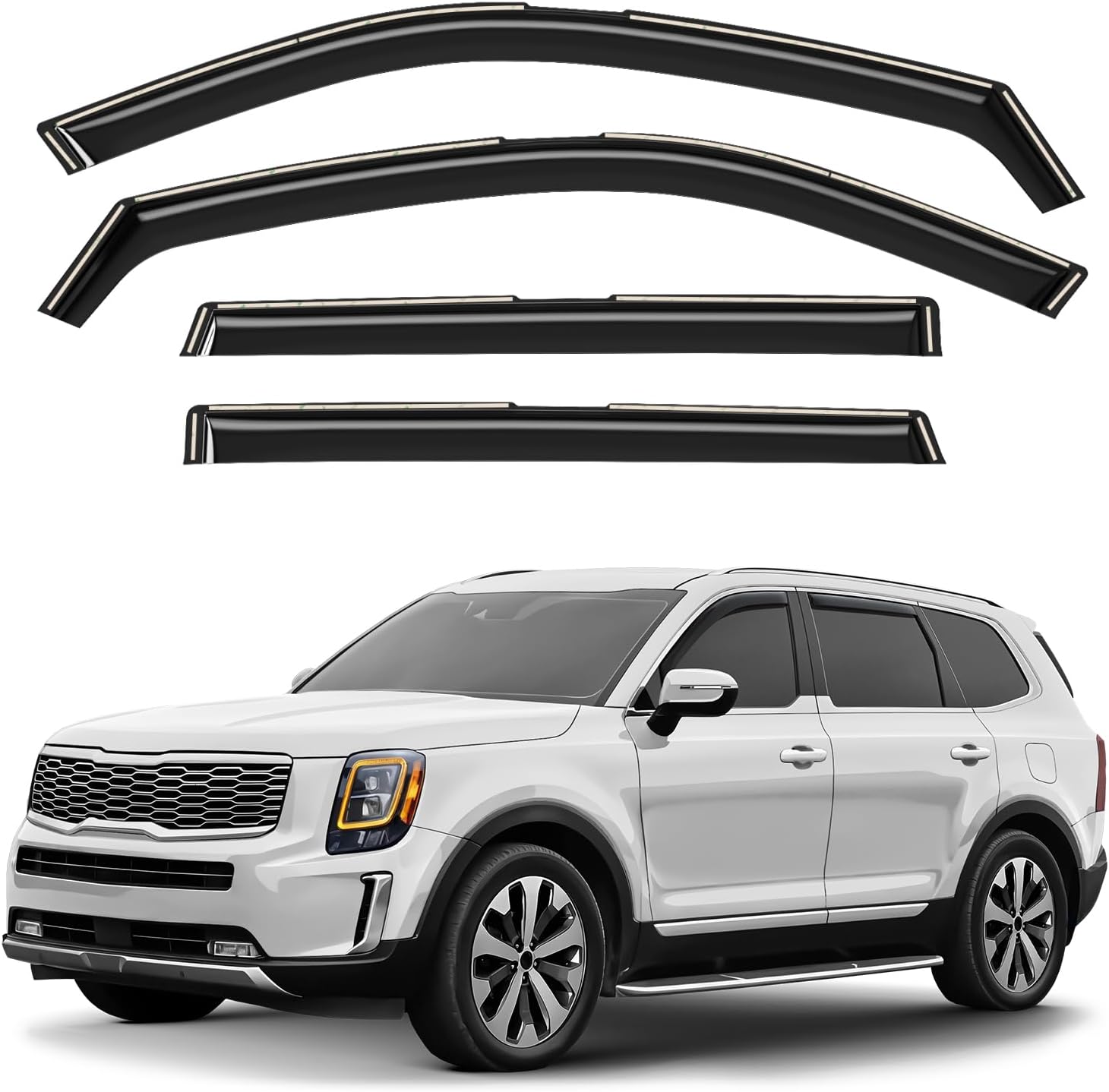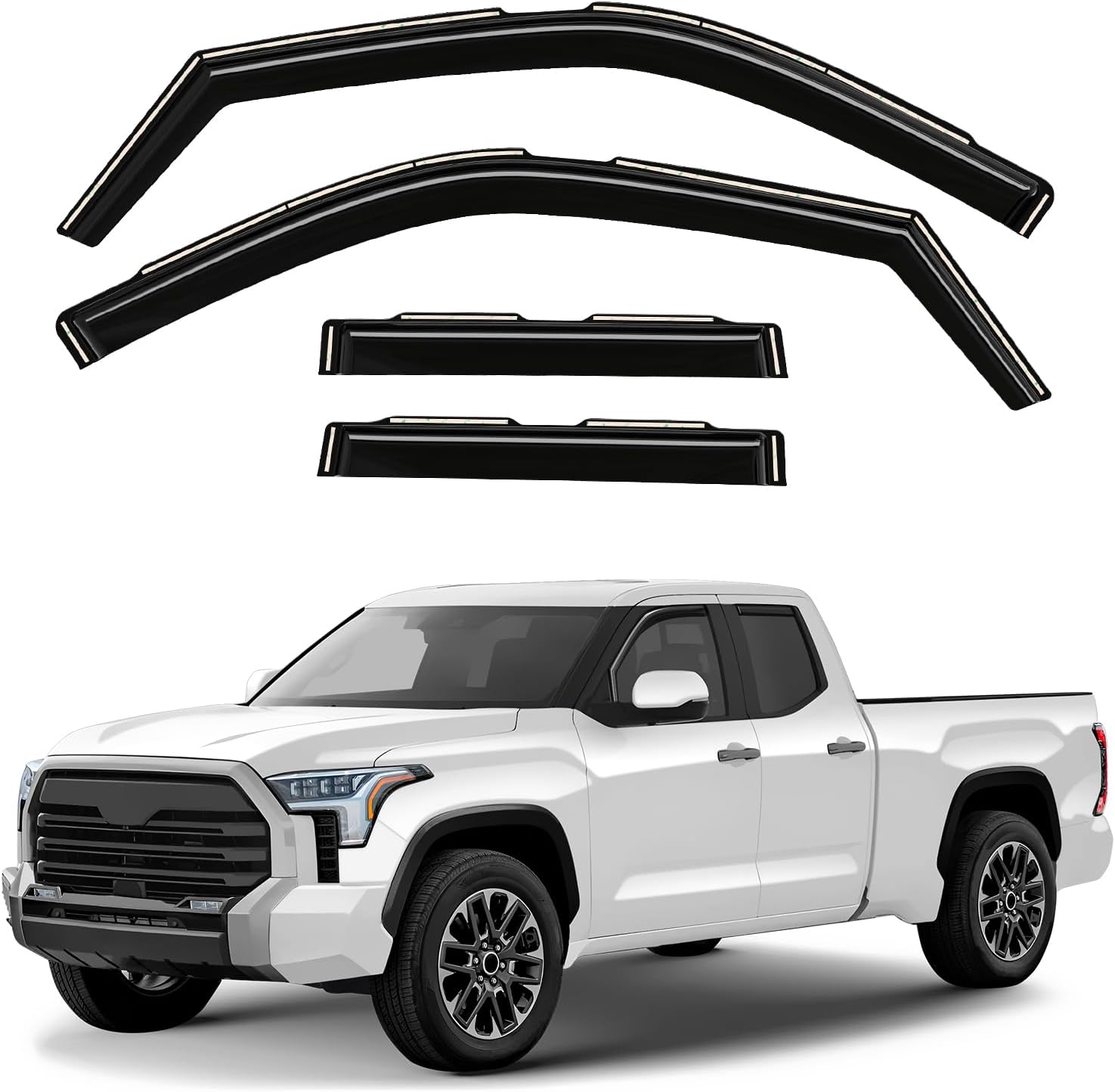 The Original GrandWheel window visors are manufactured with the polycarbonate. Other use acrylic material that cannot be same flexible and durable like polycarbonate. The GrandWheel window visors are engineered by using cutting-edge technology to reduce noise, deflect rain whilst and keep cabin cooled. The 4-piece set comes with easy to install 3M tape and installation manual. Specifications: - Condition: 100% Brand New; - Fitment: for F-150 2009-2014 SuperCrew; for F-150 SVT Raptor 2011-2014 SuperCrew; - Package includes: 4 pcs window visor deflectors (2 front/2 rear), prep pad, installation manual; - Color: Smoked black tinted; - Material: High quality polycarbonate. Features: - Fresh air even while raining; - Reduces sun glare; - Easy installation; No-drilling required; - In-channel installation; - Custom fit.