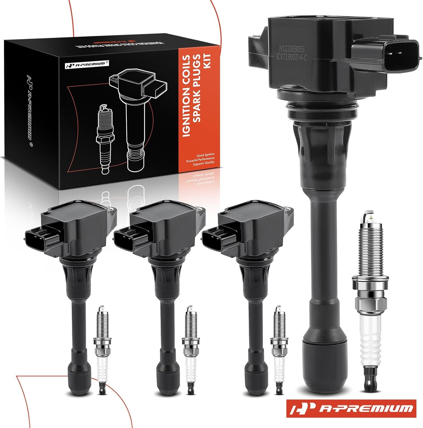| Part Interchange Info | This A-Premium Ignition Coil Pack (with compatible Iridium Spark Plugs) is potentially interchangeable with other manufacturers' ignition coils designed for the following vehicles: Nissan Versa 2012-2019 (1.6L & 1.8L), Note 2014-2019 (1.6L), Micra 2015-2019 (1.6L). The OEM part numbers provided (UF-719, UF719, 224481HC0A, NGK91187, 91187) can be used to cross-reference with other manufacturers' part numbers for potential interchangeability. |