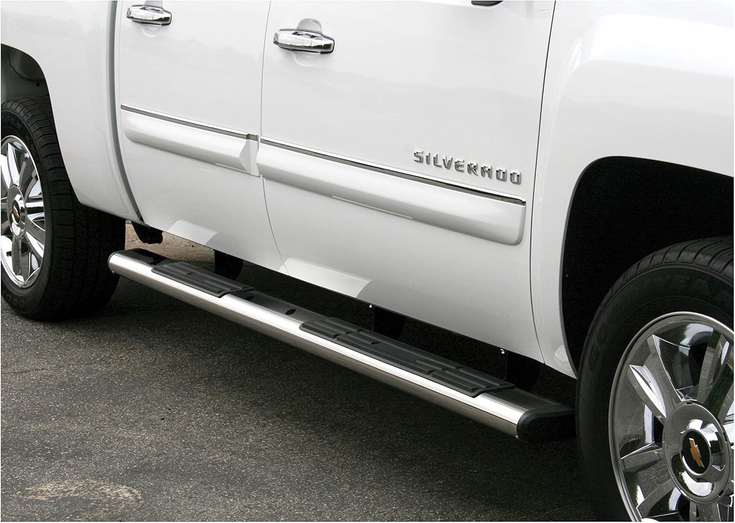 For solid footing, a comfortable step and a bold look for your truck, ARIES 6" oval side bars are a step up. They are designed to mimic the style popular original equipment side bars and running boards, featuring two professional finish options, large non-skid step pads and tapered end caps. This particular pair of 6" ovals is made with 304 stainless steel, meaning they are high in nickel content to be truly resistant to rust and corrosion. For a lasting shine and a bright accent on your vehicle, they are given a highly polished, mirror-like finish. They are also available in semi-gloss black powder-coated aluminum. To protect the interior of the tubes, all 6" oval sides are equipped with hard ABS plastic end caps. The end caps come pre-attached to the tubes and feature a tapered design, lending to the overall OE look of the side bars and providing a professional finishing touch on your truck or SUV. For a sure step every time you climb into your vehicle, ARIES 6" ovals are equipped with extra-wide step pads. The step pads are made from tough polypr opylene and provide a generous 5" width. The large, flat surface offers comfortable footing and has a textured surface to prevent slipping, even when wet. The polypropylene construction makes the step pads durable and crack-resistant for long-lasting use. ARIES 6" oval side bars are also made for easy, no-drill installation. The boards themselves feature a track system for versatile application, and they mount using vehicle-specific brackets for a custom fit. The mounting brackets are made from high-strength carbon steel and use pre-existing holes to eliminate drilling during the installation process (NOTE: Mounting brackets for these side bars are sold separately. See the application information to find which brackets and side bars fit your vehicle).