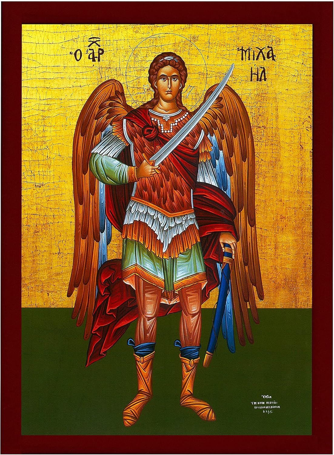 • Archangel Michael icon, Handmade Greek Orthodox icon of St Michael, Byzantine art wall hanging on wood plaque religious icon, religious gift