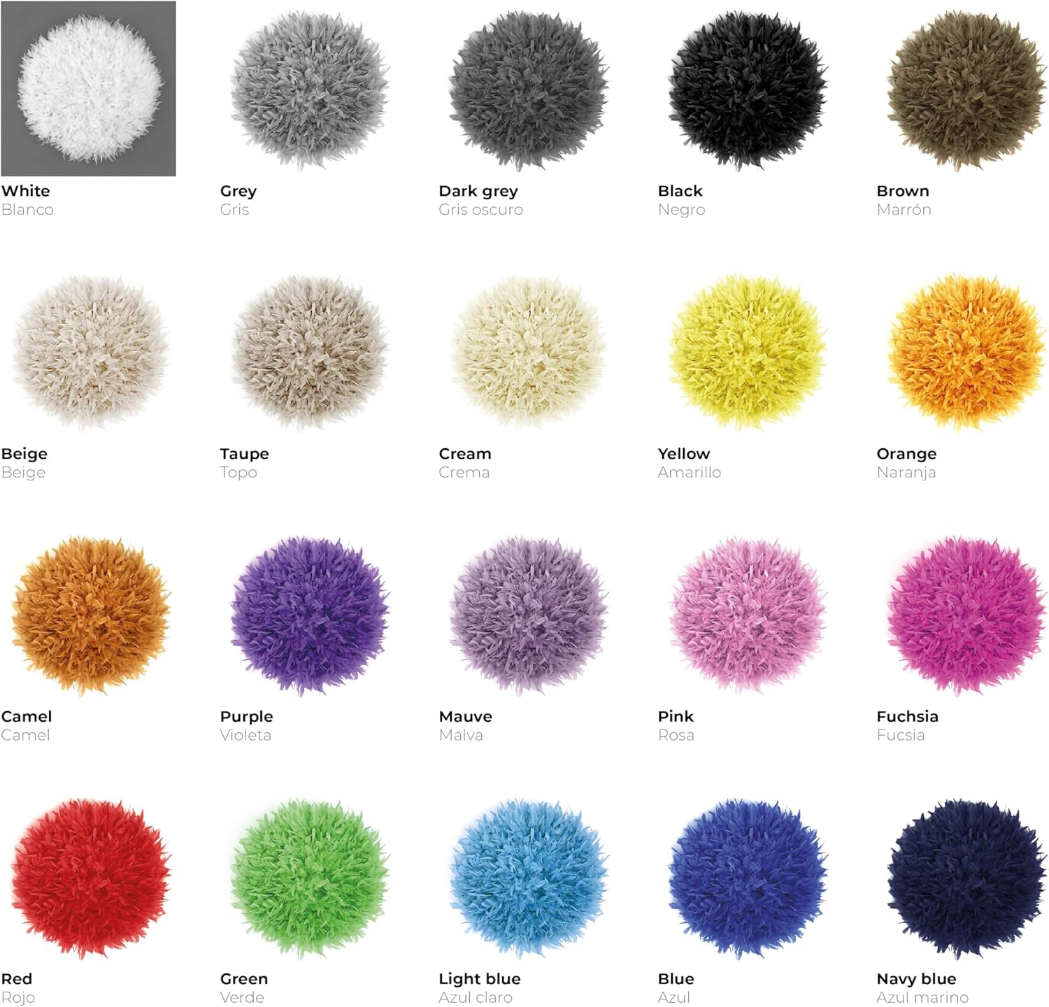 | Color | White, Light gray, Dark gray, Black, Brown, Beige, Taupe, Cream, Yellow, Orange, Camel, Violet, Mauve, Pink, Fuchsia, Red, Green, Light blue, Blue, Navy blue |