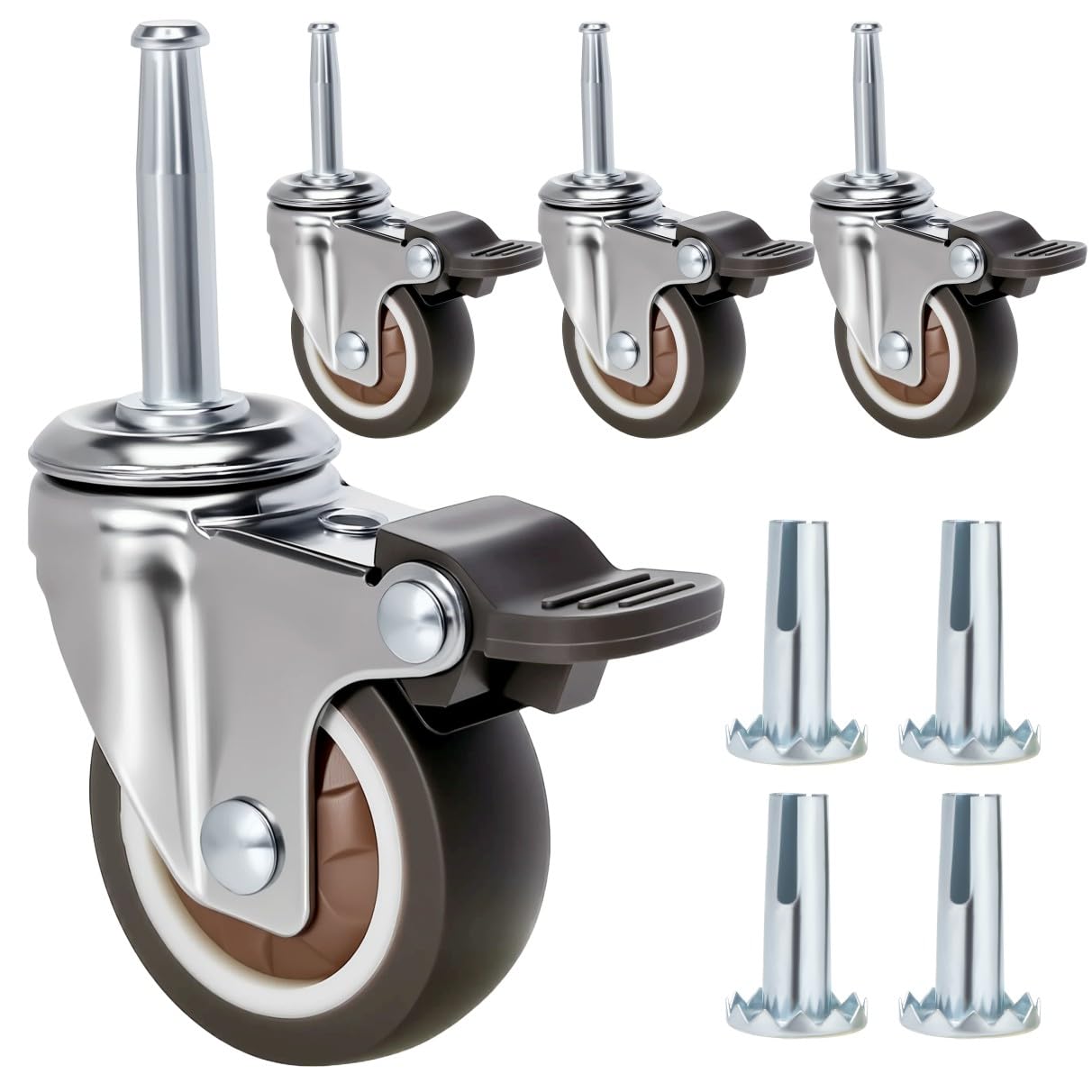 | Included Components | 2 inch grip neck caster wheels 8 pack and 8 mounting sockets |