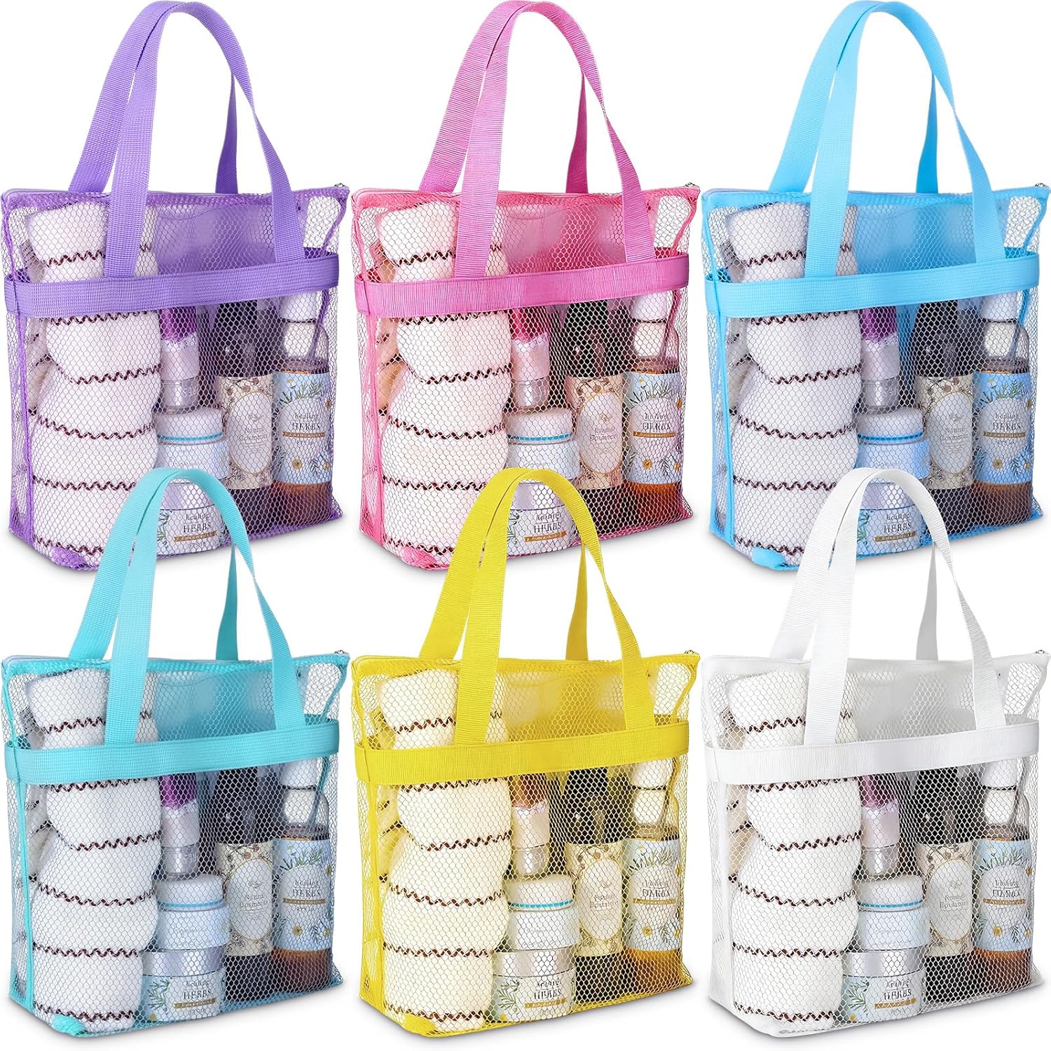 Features: Quick drying and easy to clean: This mesh shower bag is breathable and dries quickly, allowing air to circulate so the items inside can dry too. If you go to the beach, you don't have to worry about sand getting stuck between your items because it will pass right through the mesh, the mesh allows water or sand to drain quickly, hang it on a door, shower head, or hook for quick drying and easy cleaning. Various colors: This mesh beach bag is stylish and simple, and it comes in 6 colors for you to choose from, namely light beige, light pink, light blue-green, dark gray, light lake blue, and light snow blue. This macaron color scheme can add a sense of atmosphere to your use scene, making your mood happy with these colors. Specifications: Material: sturdy mesh fabric Color: deep lilac, fruit green, orange, blue, pink, fluorescent green Size: 12 x 10 x 3.5 inches Package includes: 20 x Mesh shower caddy Notes: Manual measurement, please allow slight errors on size. The color may exist a slight difference due to different screen displays