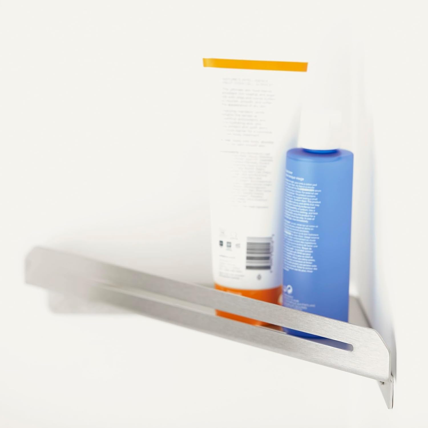 Keep all of your bath necessities well organized and within reach with this space-saving Elegant Corner Shower Shelf. The corner shelf features a sleek floating style design that complements any bathroom décor. It can be easily installed in the corner of your shower or bath when extra shelving or spacing would be beneficial. The corner shelf is crafted from durable, water-resistant #304 stainless steel and is thoughtfully designed with a lipped edge to keep items secure.