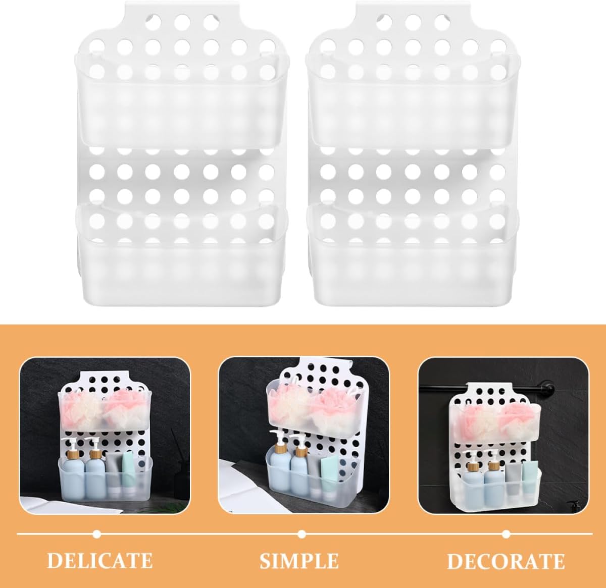 Package List 2pcs x bathroom baskets Features -Convenient hooks: features hooks for hanging towels, bath sponges, and more shower organizer -Size:35.00X25.00X8.50cm/13.76X9.82X3.34in -Efficient organization: dual layer design maximizes storage space for bath products bathroom sundry rack -sturdy materials: constructed from , waterproof materials for use -Simple installation: adhesive setup is easy and prevents wall damage shower shelf for inside shower -Color:White -Material:Plastic -Product Info:Bathroom hanging basket -Stylish design: modern and minimalist design enhances the look of any bathroom shower organizer plasticGoods Descriptionkitchen storage shelf The dual-layer design offers generous space for organizing your toiletries, while the adhesive installation ensures a damage-free setup.bathroom accessories Its elegant design complements any bathroom decor, adding a touch of sophistication to your space.nail-free seasoning rack Optimize your bathroom storage with this no-drill shower rack.bathroom wall organizer The drainage holes prevent water buildup, keeping your items dry and