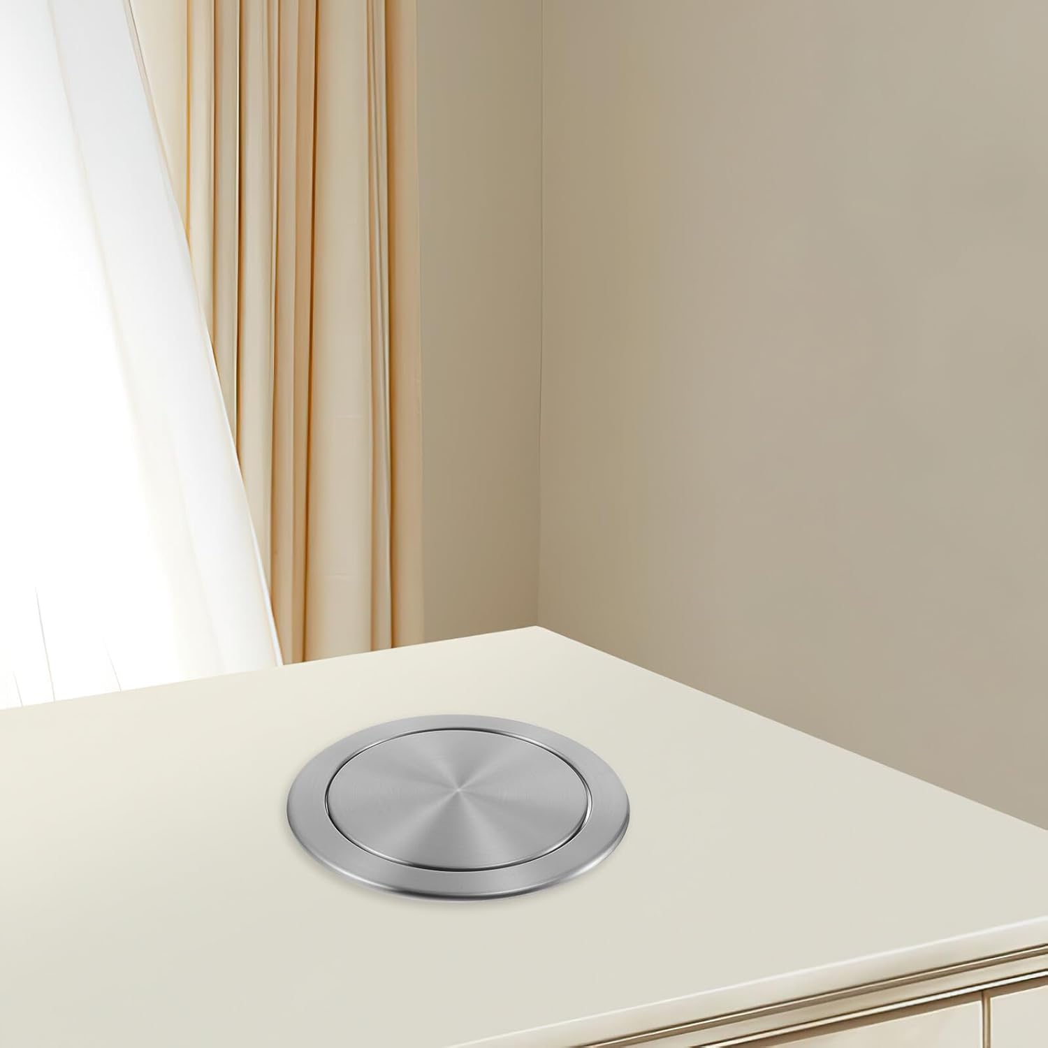 Package List 1 x embedded trash can lid Features -Product Info: Kitchen trash can lid -Material:Stainless steel -Space optimization: the embedded structure saves valuable counter space, ideal for compact kitchens or busy cooking areas countertop built-in trash lid -Control: traps unpleasant smells, keeping your kitchen or bathroom smelling fresh and clean countertop trash bin lid cover - Note: Suitable for opening holes with diameters of 22cm/8.66in to 25cm/9.84in drop-in countertop trash bin lid -Color:Silver -User friendly: flip lid functionality simplifies waste disposal while keeping trash out of sight countertop recessed garbage lid -Modern aesthetic: the stainless steel finish enhances the overall appearance of your kitchen stainless steel embedded waste lid -Sturdy construction: built to withstand daily use, the stainless steel material ensuring stable performance over time -Size:26.50X26.50X4.50cm/10.41X10.41X1.77inGoods Informationbathroom trash can swing lid Whether used in a kitchen, bathroom, or office, this lid offers a stylish and functional way to manage waste .countertop recessed garbage lid Its smooth surface is easy to clean, and the swing mechanism allows for hsimple operation.countertop built-in trash lid The stainless steel swing lid is perfect for maintaining cleanliness in high-traffic areas