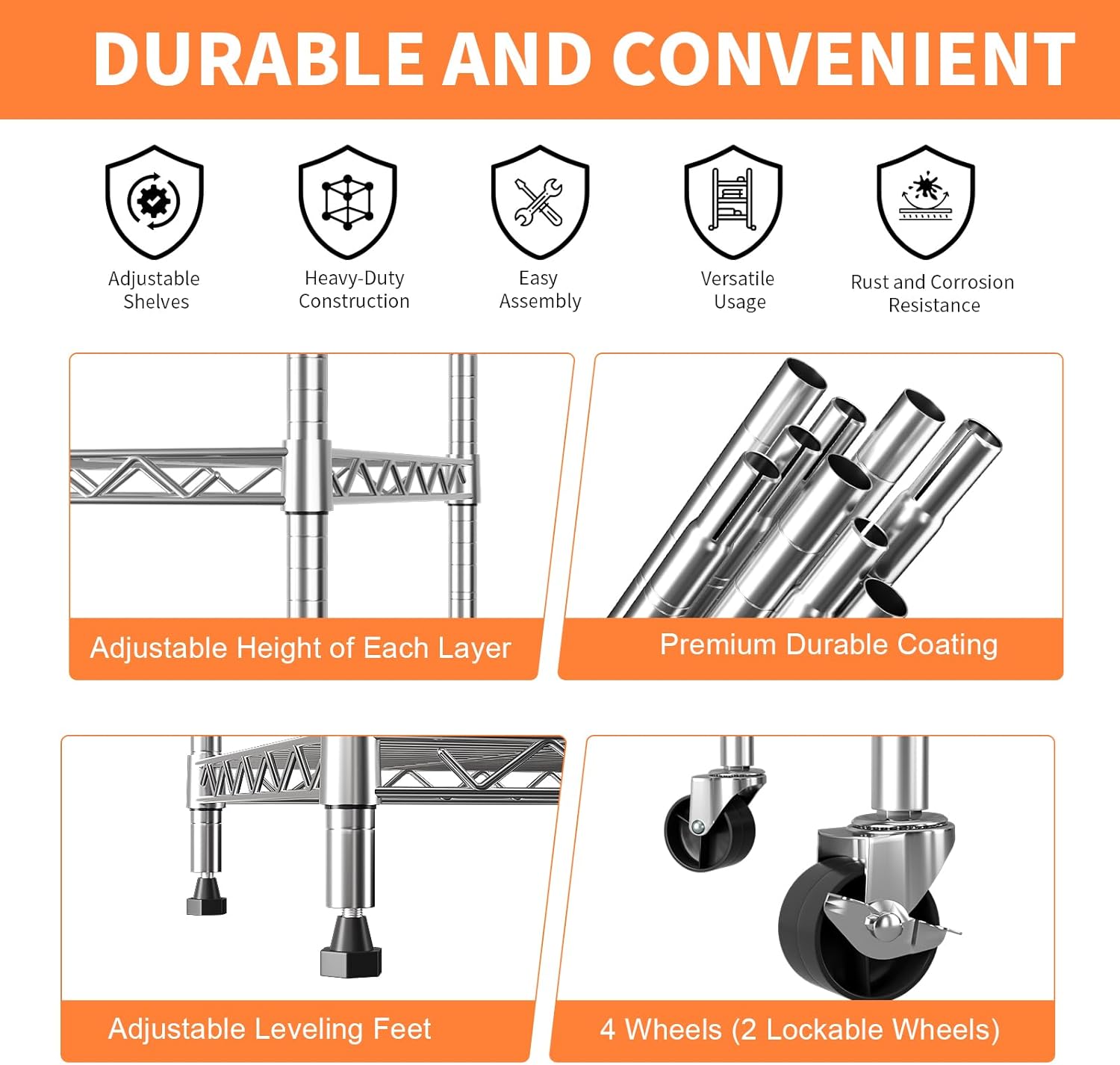 | Additional Features | 2 Hooks, Adjustable, Lockable Wheels, Space Saving, Waterproof |