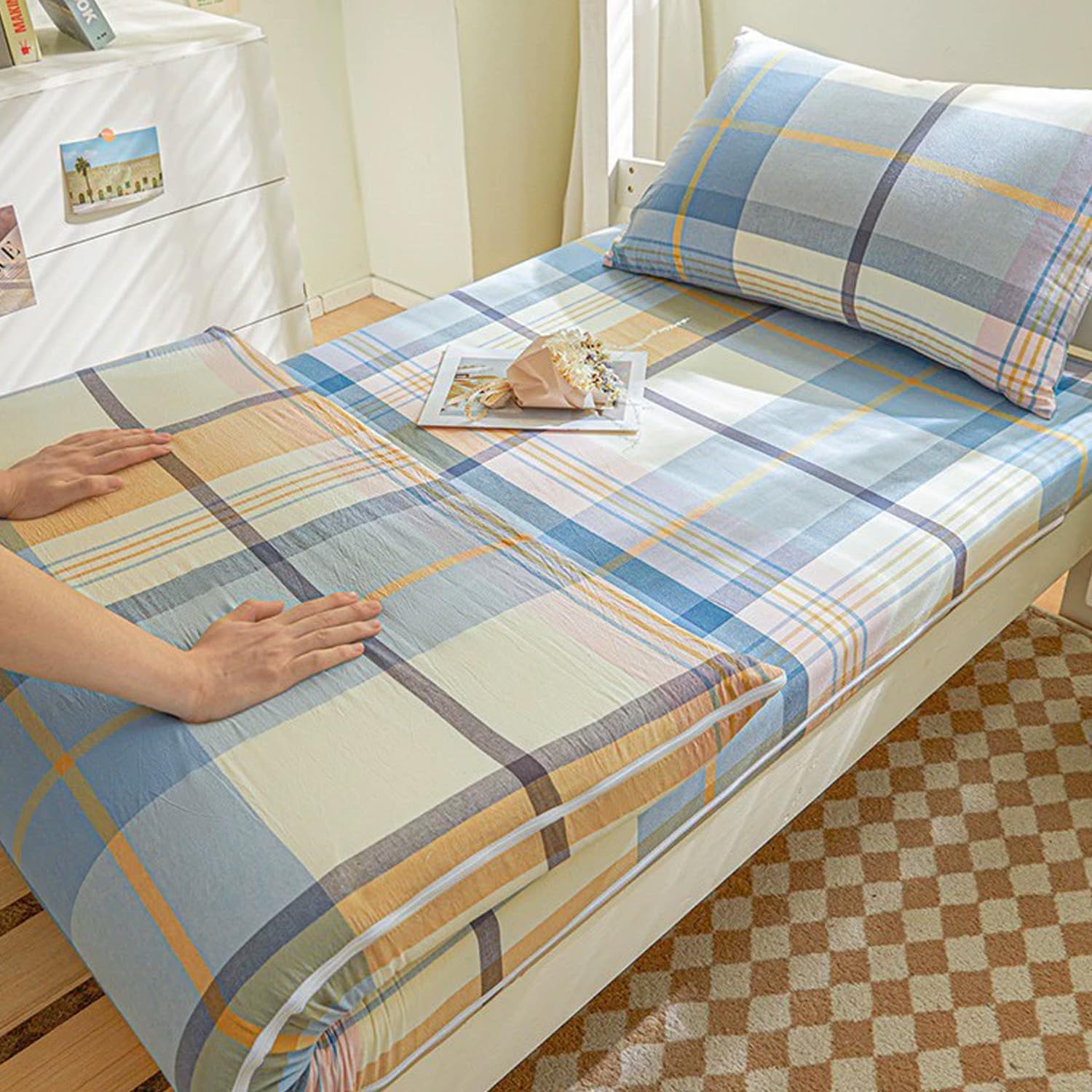 Made of pure cotton fabric for a cushion coverDustproof, comfortable, and softVery suitable for use in dormitory bedroomsCraftsmanshipProduce high-quality mattress covers for youFabric:Pure cotton fabricFeatures: Soft and dustproof and ComfortWhether it can be machine washed: Can be machine washedPrinting and dyeing process: Color woven printing and dyeing processStyle:A,B,C,D,E,F,G,H,I,J,K,L,MSize:80x190cm(31*75in)(Suitable for soft mattresses with a thickness of 1-10 cm)90x190cm(35*75in)(Suitable for soft mattresses with a thickness of 1-10 cm)90x200cm(35*79in)(Suitable for soft mattresses with a thickness of 1-10 cm)120x200cm(47*79in)(Suitable for soft mattresses with a thickness of 1-15 cm)150x200cm(59*79in)(Suitable for soft mattresses with a thickness of 1-15 cm)180x200cm(71*79in)(Suitable for soft mattresses with a thickness of 1-15 cm)Package includes:Floor futon mattress cover*1 (not including futon mattress)Notes:Due to the light and screen setting difference, the item's color may be slightly different from the pictures.Please allow slight dimension difference due to different manual measurement.