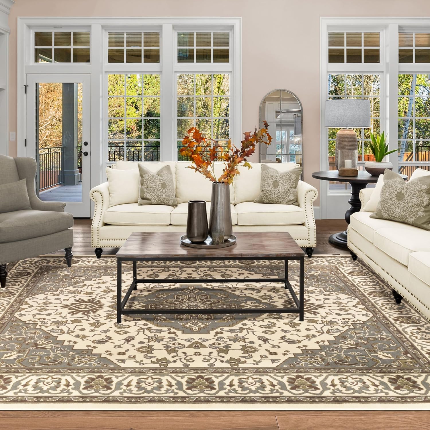 Add a sophisticated touch to your living space with the Superior Glendale Indoor Area Rug. Made from durable materials, this rug is incredibly sturdy while remaining soft and comfortable underfoot. This elegant area rug showcases a detailed floral medallion pattern to bring visual intrigue to your tile or hardwood floors. Its regal feel adorns your floors and instantly coordinates with any traditional or formal home styles. The cozy pile height is plush and easy to maintain, making this rug a long-lasting option for homes with children and pets.