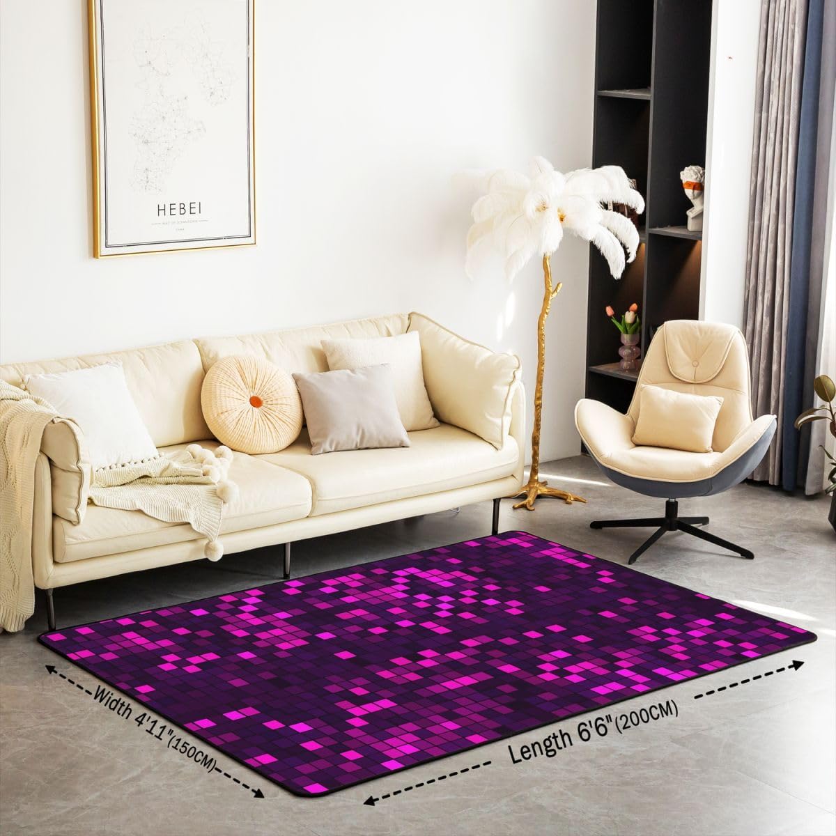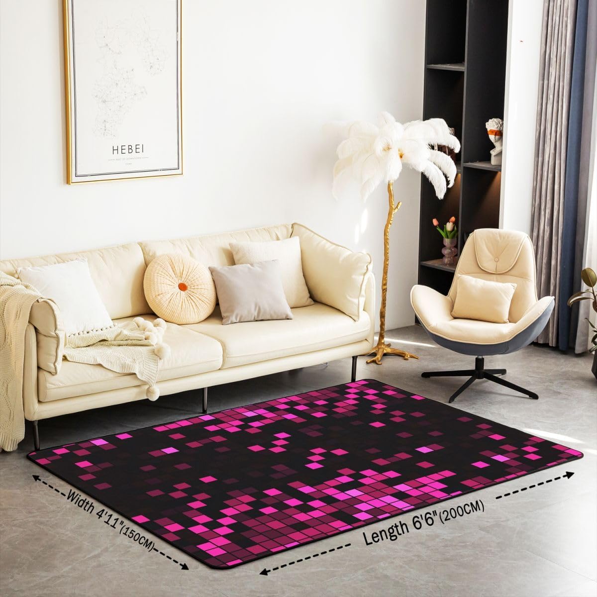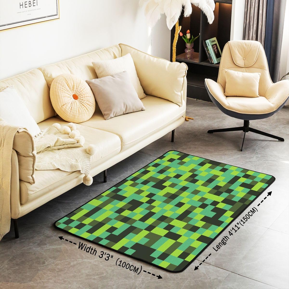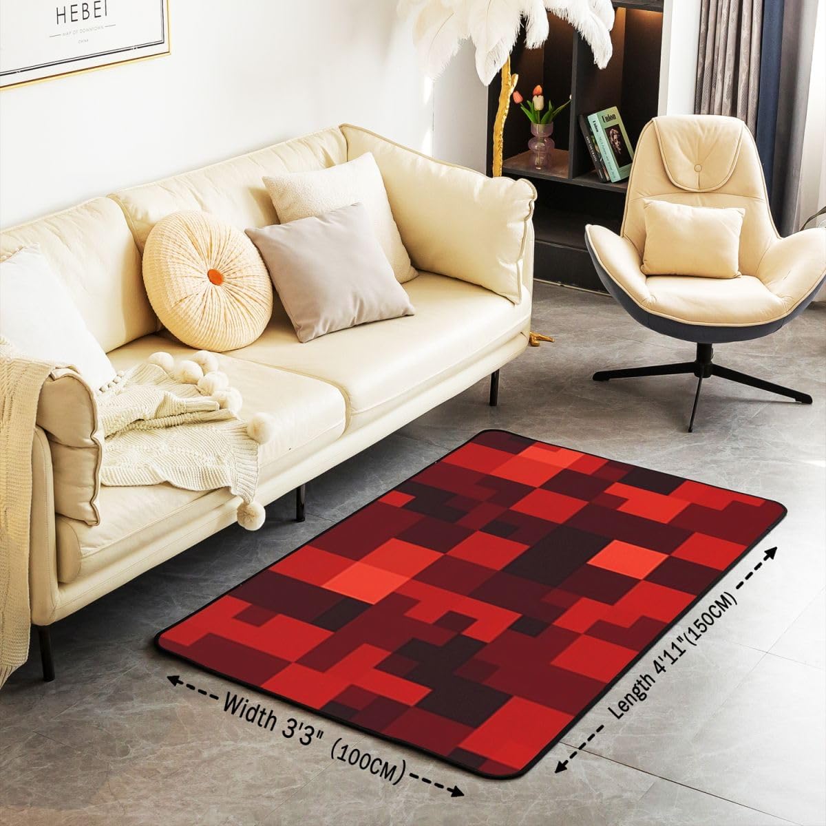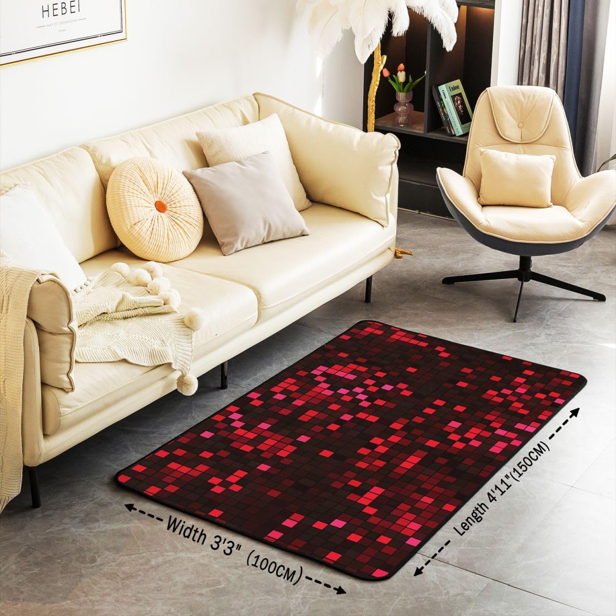 Achieve the desired thematic harmony in your home or office by incorporating various patterns; our area rugs collection specializes in unique designs that feature vibrant colors and captivating patterns, adding an element of grace and style to your living space; those seeking a cozy and practical atmosphere will easily find their preferred design among our diverse selection; choose patterns that complement your furniture and other decor elements to create a truly distinctive home ambiance;Product Specifications:Size and Weight: 3 feet x 5 feet; 39" x 59"; 2.8 pounds5 feet x 7 feet; 59" x 78"; 3.7 poundsMaterial:Soft sponge interlayer, durable high density elastic cotton, non slip backingTips for Optimal Use:kindly note that product was folded and packaged tightly resulting in creases in the surface, just settle for a few days until the creases disappear; if you need to remove creases sooner, just be ironed, then it can go back to its original2; Please note that there might be slight variations in rug colors due to differences in computer monitors; additionally, pattern variations may occur based on shape and size selection3; Deviations of approximately 0.4 to 0.7 inches may exist