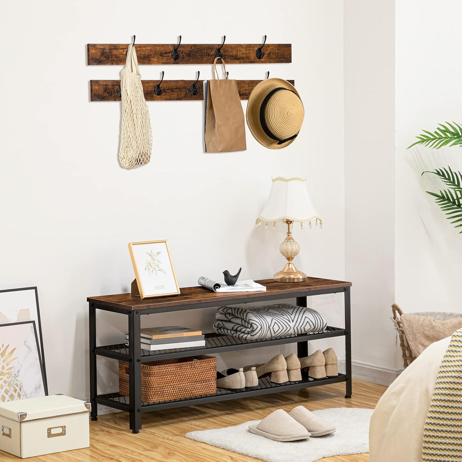 Hall Tree with Bench and Coat Rack Shoe Bench