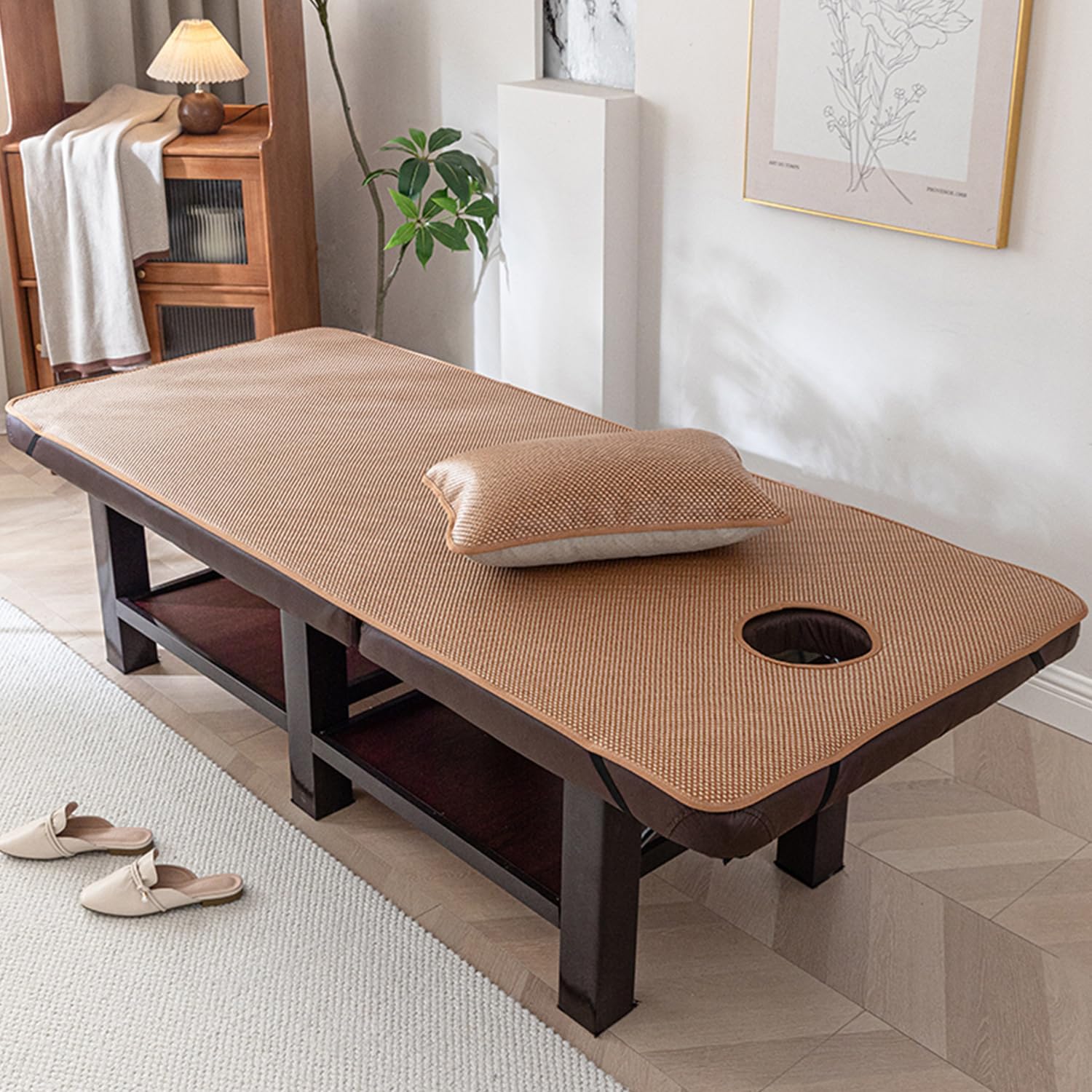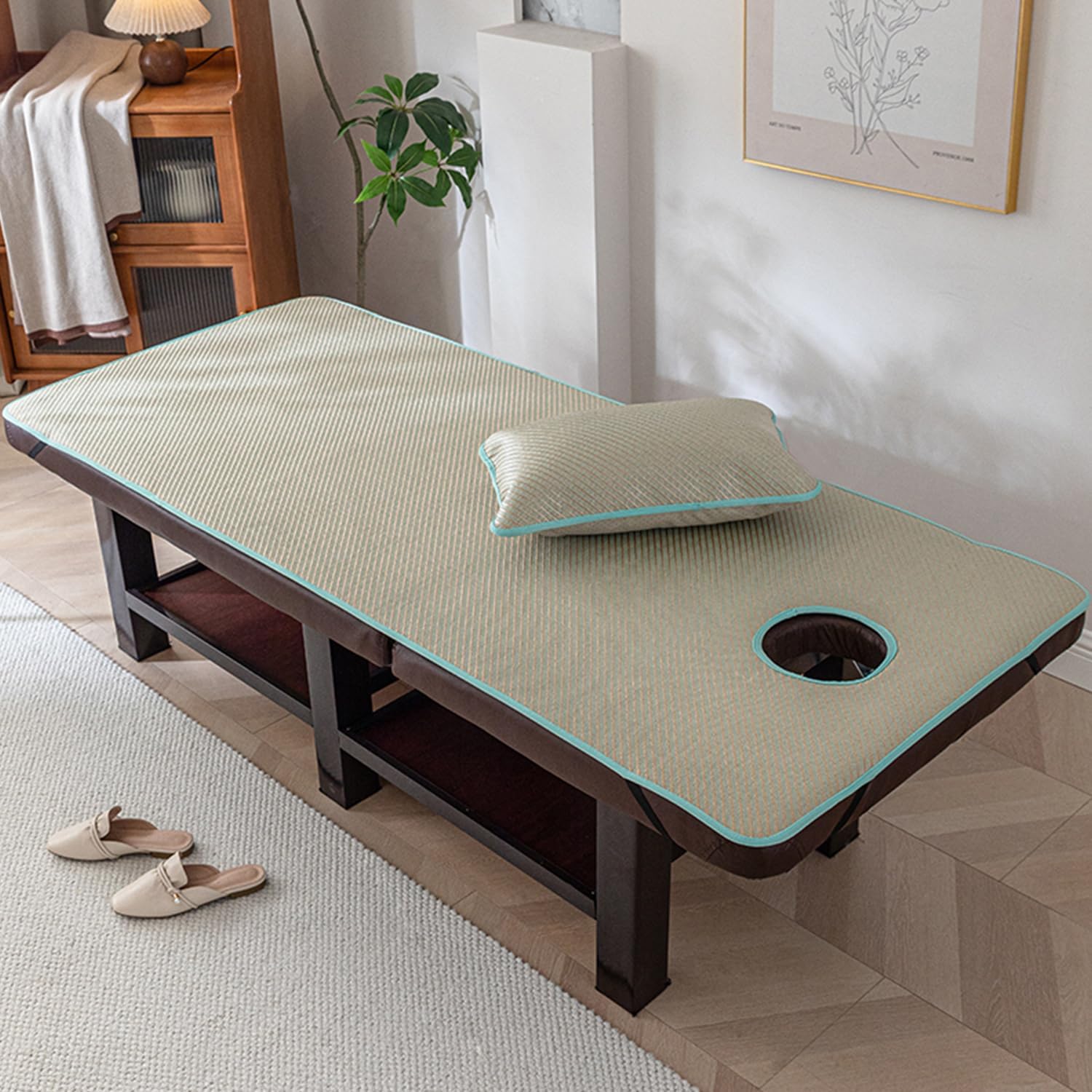 Carefully selected high-quality rattan fiberComfortable summer matGive you just the right amount of coolnessGive your beauty salon a new lookInterpret innovative aesthetic lifeMaterial: Ice silk + rattan fabricFeatures: FoldableWith or without facial breathing holes: with hole or without holeMassage mattress shape: square headUse places:beauty salon, health center, chiropractic, spa sauna, physiotherapy massage parlor, etc.Style:A,B,C,D,E,F,G,HSize:60*180cm(24*71in)60*190cm(24*75in)70*180cm(28*71in)70*190cm(28*75in)80*180cm(31*71in)80*190cm(31*75in)Packaging Details: Massage Table Mattress pad*1(Excluding Display Bed)Kind Tips:The product photos are all taken in kind, which may be due to the light and different monitors when the pictures were taken. The problem of color difference caused by the display deviation and personal color understanding is unavoidable (such problems are not quality problems )