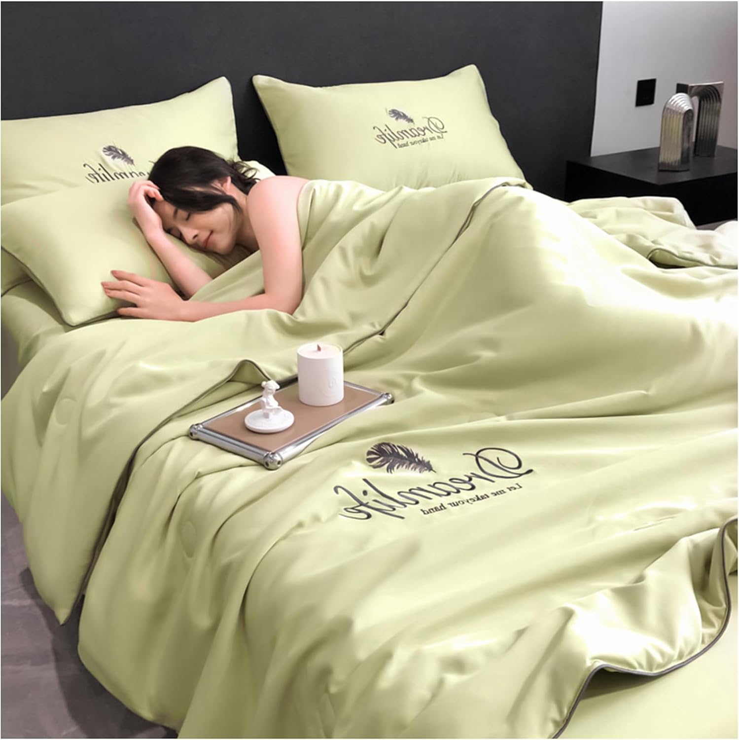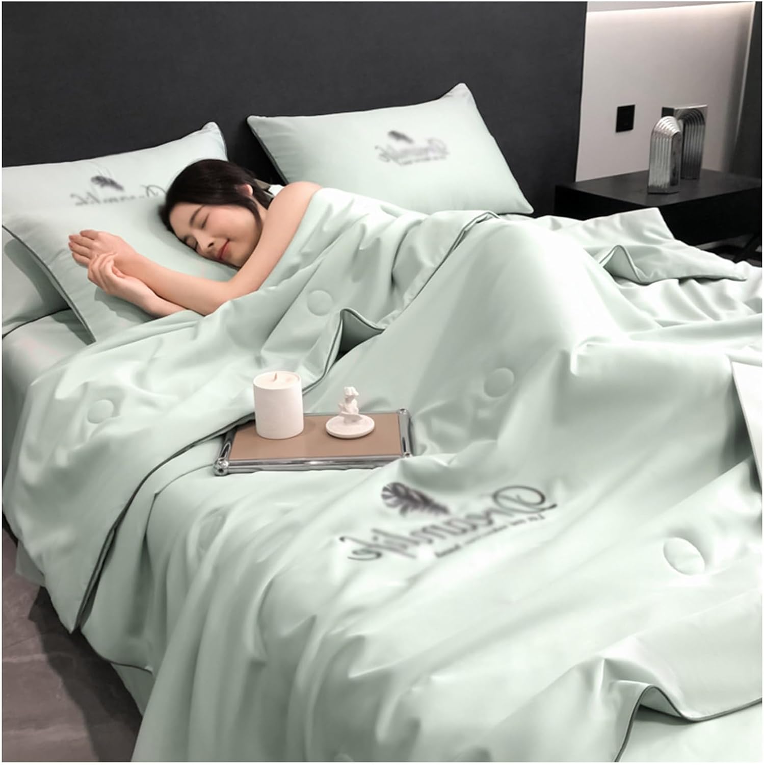 Summer single ice silk quilt, washable single ice silk air conditioning quilt cover, light and comfortable cooling quiltWhy not buy one today and enjoy a cool and comfortable summer night's sleep?: FunctionalityCool Ice Silk Summer Duvets are the perfect way to stay cool and comfortable all summer long.Made with materials and traditional Chinese techniques to ensure a comfortable and luxurious sleep.Easy to clean and maintain, making them the perfect addition to any bedroom.: Product details:Material: polyester fiber.Size: 150*200CM, 180*220cm,200*230CM Printing and dyeing: reactive printing and embroidery: the package includes:1x Quilt (excluding other things): Remarks :Due to manual measurements, please allow slight measurement deviations.Due to the different display and lighting effects, the actual color of the item may be slightly different from the color shown in the picture.