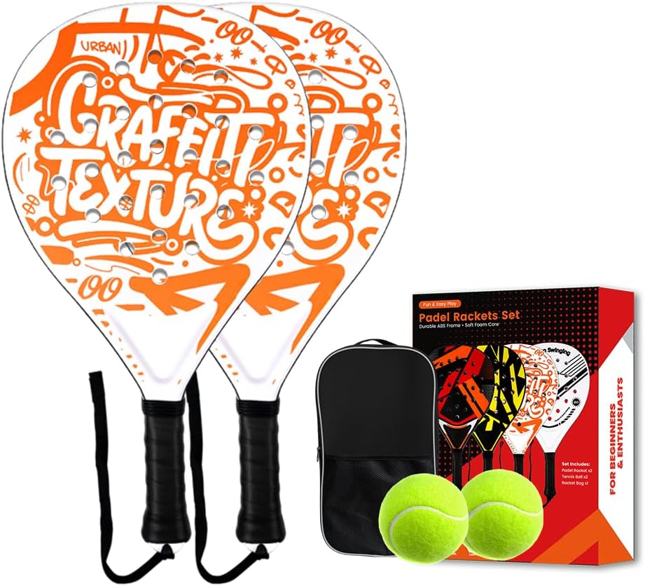 Padel Racket Set of 2 - ABS Surface & EVA Foam Core, Beach Tennis Paddles with 2 Balls & Carry Bag - Outdoor, Sand, Backyard, Pool Fun for Adults