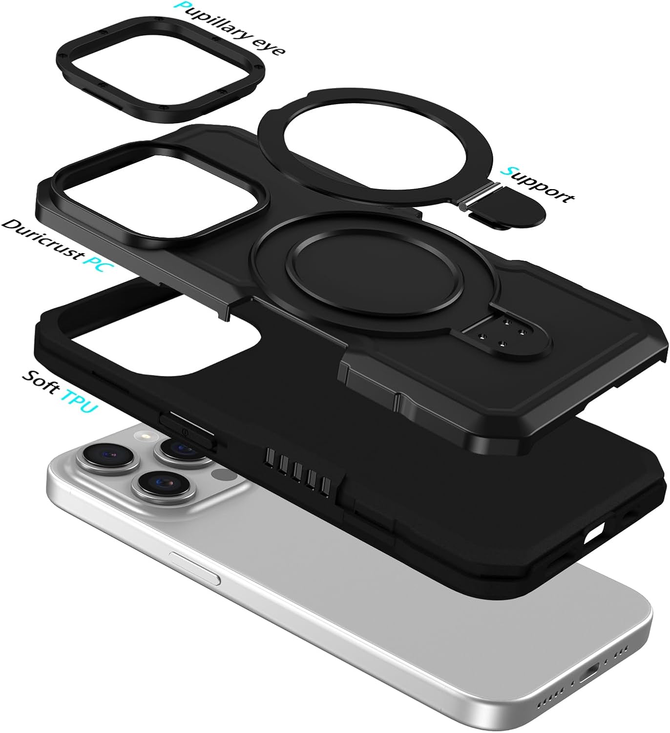 Stand Phone Case material: Hard PC+Soft TPU+Fulcrum bracketFeatures:1. 【Multifunctional Combination】:Hard PC+ Soft TPU+ Bracket + Stand Case. Silicone soft TPU and moderate hardness PC, with mobile phone holder. Combination of rigid PC+flexible soft rubber TP, anti-collision and drop resistance, installation and disassembly without scratching the machine, thickness 2.0mm, better protection.2. 【Phone Holder】:Bult-In Hidden Bracket, Creative fulcrum bracket design, 135° adjustable angle, supports horizontal and vertical screen switching. Pull the stand and turn on the viewing mode at any time. Provide more convenience for your life, free your hands anytime anywhere.3. 【Design】: UV oily spray paint, no fingerprints, high-quality imported raw materials, good texture. The four corners are anti-fall and reinforced, and the protection ability is outstanding.4.【Lens Protection】: The eye protection is higher than the lens pupil, fully protecting the lens, resistant to falling, safe and reliable.5. 【Anti-Fall Design】: 180° all-inclusive protection, Shock-Resistant, material High impact resistance Strong mechanical properties. The ingenious fusion off lexibility and toughness reduces the impact off orce and effectiyely protects the phone. Extra Raised Lips protect your screen and camera. Raised edges to protect screen from scratches when placed face down. lt has raised lips above the camera.6. 【Real Machine Mold Opening Reject Top Shell】: 1: 1 Size restore. Hole position fitting. Stylish and practical, reliable quality phone case. Comfortable Texture, appearance and feel coexist.