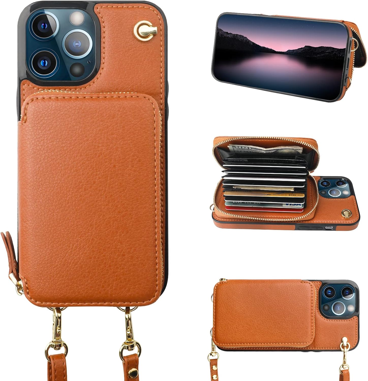 | Additional Features | Adjustable Crossbody Lanyard Strap, Camera Protector, Detachable Wrist Strap, Kickstand Function, RFID Shileding Feature, Wallet Purse Case with Card Holder |