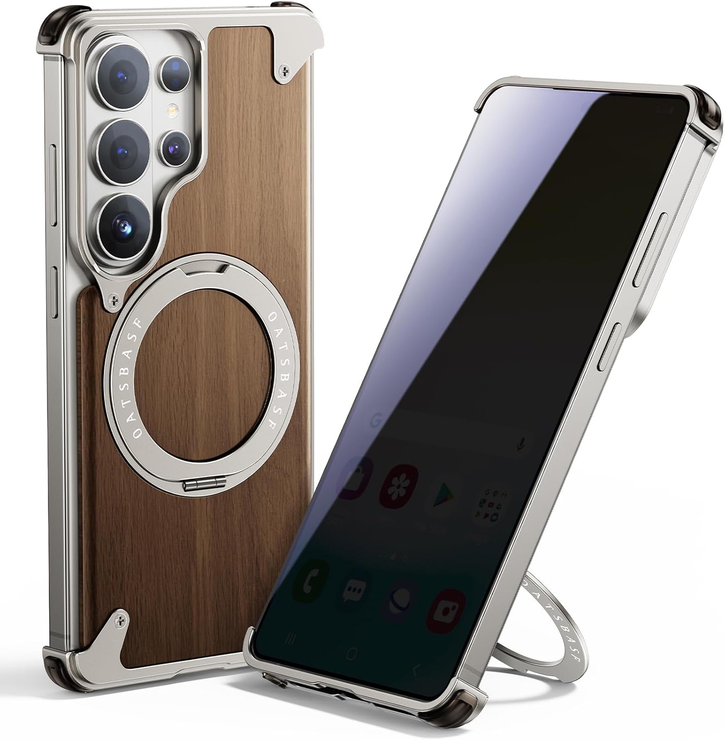OATSBASF Frameless for Samsung Galaxy S26 Ultra Case, Bezel Less Slim Protective Shock with Aramid Fiber, Sleek Minimalist Metal Aluminum Shells with Built-in Kickstand Phone Case, Natural Titanium