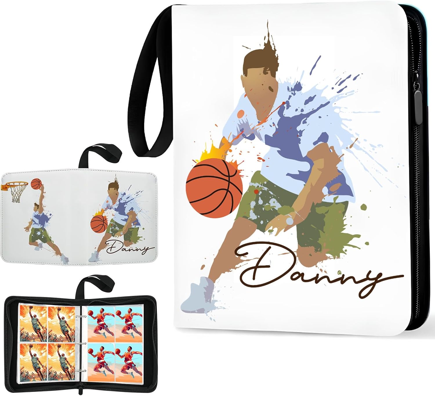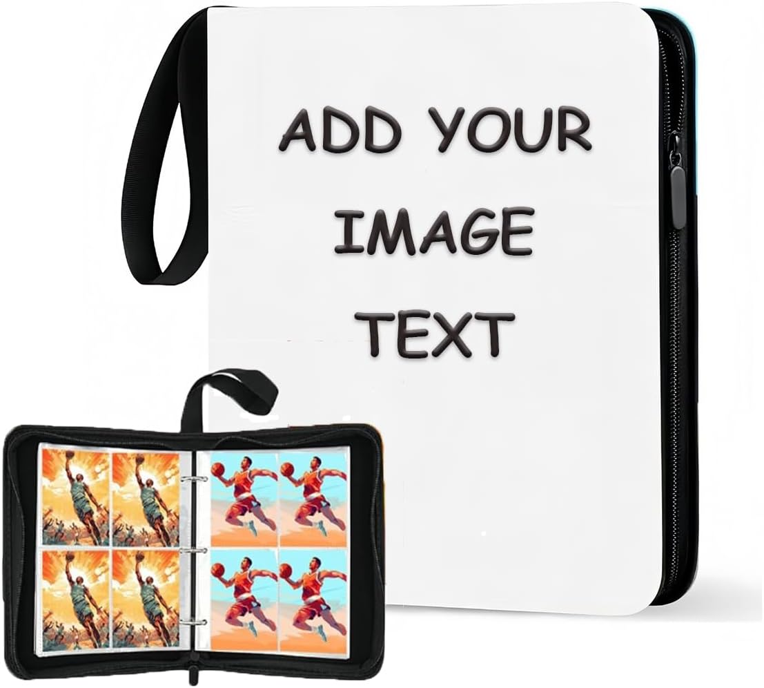 【Product Highlights】 Sports card Binder collection Albums can be customized with your message! You can leave your name and picture on the customization page and get a baseball card, Soccer Cards,TCG Cards, MTG Cards,Game Cards, Trading cards book that highlights your uniqueness.Card Sleeves Details:1. Double-sided Pockets:The card sleeves are used with double-sided pockets, which greatly save storage space and make turning pages and browsing more intuitive and interesting.2. Waterproof&Dustproof:Sports card protectors made of high quality PU fabric is durable and acid-free, which is great to keep card from fading and stains.Tight stitching and top loaded pockets means that your card will be well protected from water and dust. 3. Sturdy Zipper:Smooth zipper are beneficial to zip up or expand, also prevents card from slip off and protects your privacy.Ideal Gift:The unique and cool appearance and unique customized design make this sports card holder an ideal gift for card collectors, baseball fan kids and friends. It is perfect for kids, fathers as birthday gifts, Thanksgiving or Christmas gifts, etc.
