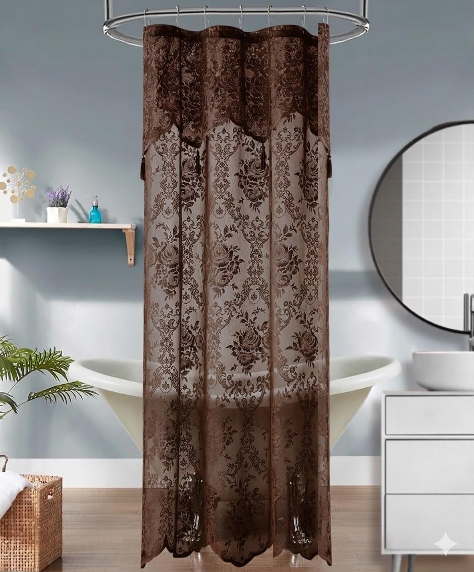 Classic Luxurious Design That Wouldn't Break a Bank: Add some luxury and vintage elegance to any bathroom with WARM HOME DESIGNS lace shower curtain with attached valance. Available in 8 colors (Black, Ivory, Grey, Golden Linen, Navy Blue, Rose Pink, Sage Green, and White) these premium, high-quality durable bathroom shower curtains will give any bathroom vintage style look that's popular in both country and modern homes. We have 72" x 96" extra long shower curtina, long length 72" x 84" shower curtain, standard 72" x 72" shower curtain, 36" x 72" stall shower curtain and 108" x 72" extra wide shower curtain. Attached valance with tassels and this cute shower curtain is embroidered with classy English Rose pattern. We also have lace window curtains, french door curtains and lace valances in the same design as can be seen below.