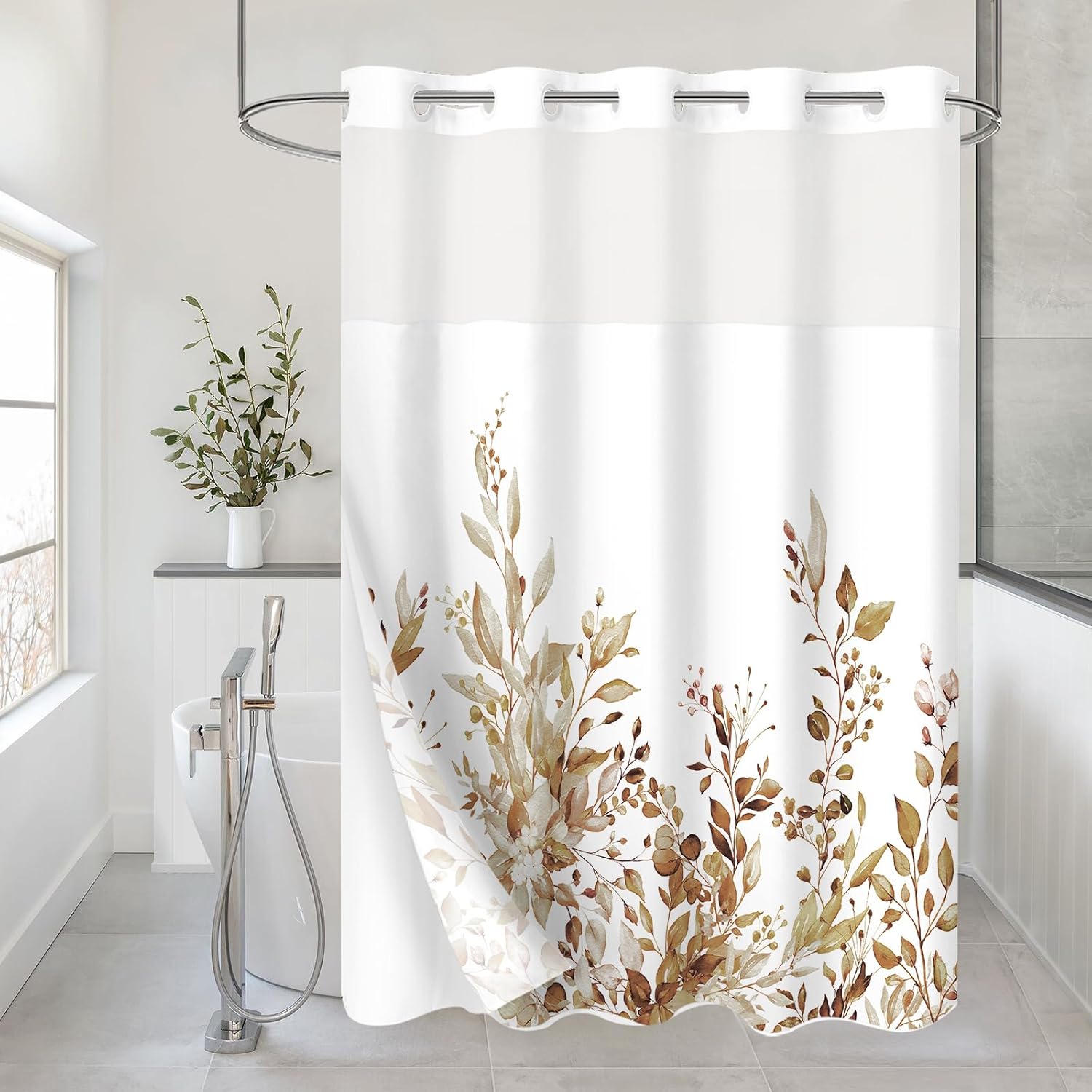 3-in-1 shower curtain includes built-in rings, attachable liner, and see through window. Available in more colors.