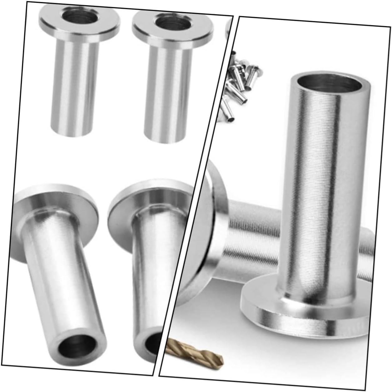 Package Include 65 x protective sleeves 1 x drill bit Characteristics - Color: Silver Cable Protector. - Size: 2.00X1.22X0.64cm/0.79X0.48X0.25 inch DIY Wire Rope Protector. - Material: Stainless steel Cable Railing Kit. - And can keep maintaining cable rail tension for preventing wire rope vibration DIY Balustrade Cable Protector. - Suitable for deck cable railing. for indoor or outdoor applications Cable Protective Sleeve. - It's made of stainless steel. Put them outside and unaffected by it DIY Cable Protective Sleeve. - These protector sleeves prevent cable from wearing into post and prevent damage cable Cable Protectors. - You will receive 65 pieces cable protector and 1pc drill bit, sufficient quantity to meet your daily demand Wire Rope Protective Sleeve.Goods DescriptionDeck Cable Protective Sleeve Stainless steel protective sleeves are easy to use.Balustrade Cable Protector Made of stainless steel, and .Wire Protective Sleeve Easy to install and the cable will certainly have no trouble passing through.Cable Protectors It is a very protective accessory that will meet your needs well.Wire Rope Protective Sleeve A for protecting deck cable