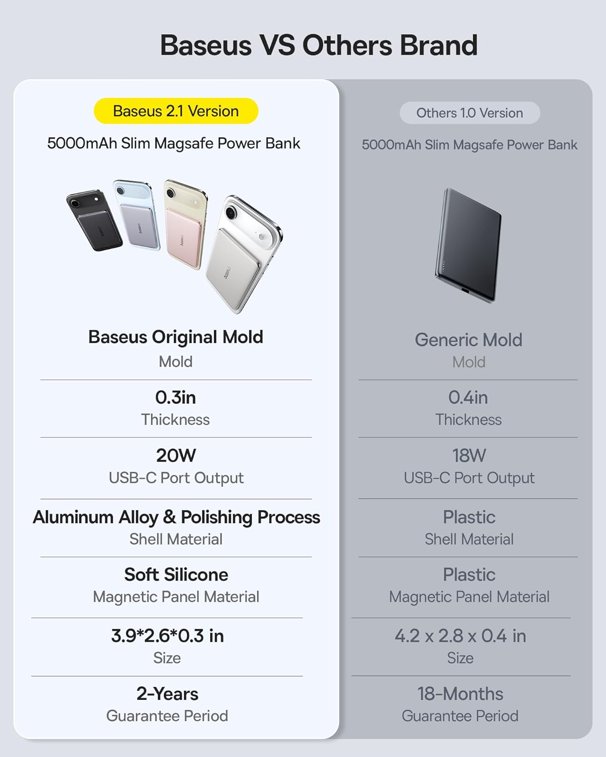 Baseus Picogo Power Bank, 0.3" Ultra Slim 5000mAh MagSafe Battery Pack, Update Polished Alloy Magnetic Portable Charger, Wireless Charger with USB-C Cable for iPhone 17 Pro Max/17 Air/16/15/14/13/12 Baseus Mini Power Bank Fast Charging 67W, 10000mAh Small Portable Phone Charger Built-in Dual USB C Braided Cable, Travel Essential Battery Pack for iPhone 17/16/15, iPad, Samsung Galaxy S25/S24 etc.