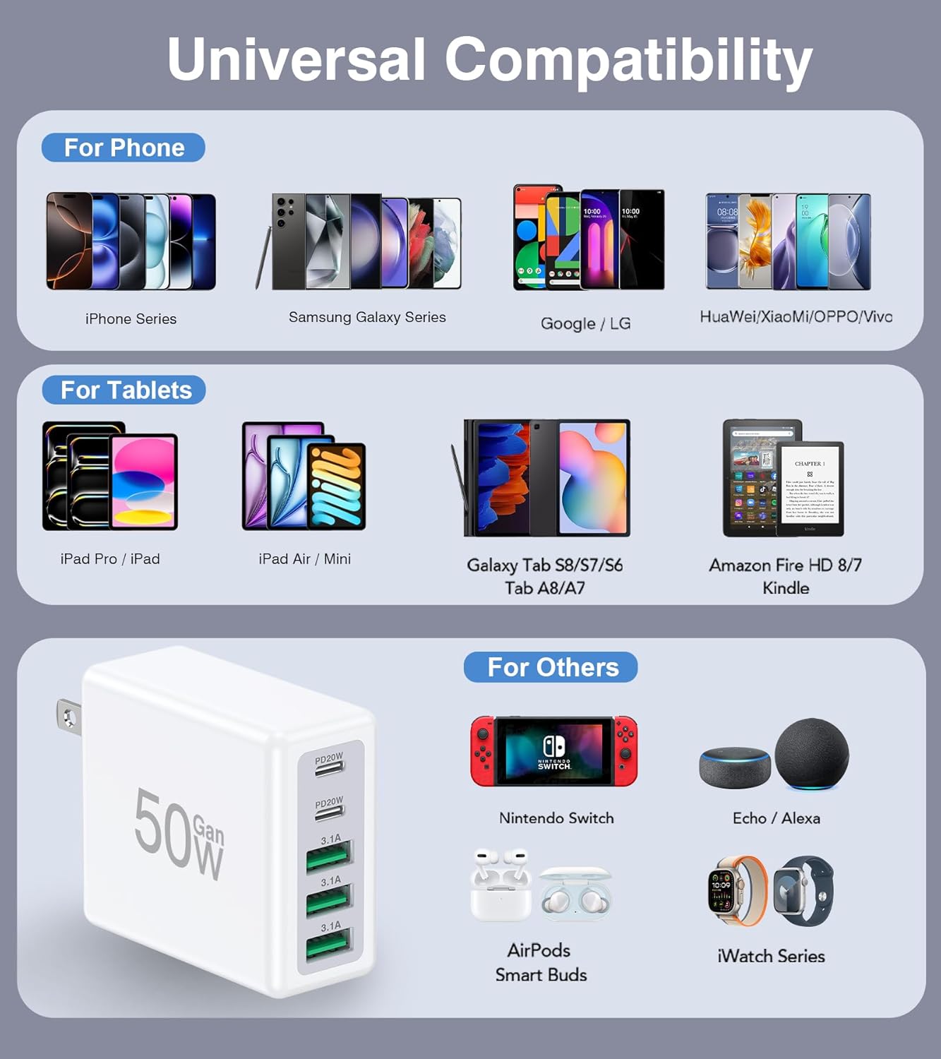 2Pack Flat USB C Wall Charger and 2-Pack USB C Wall Charger