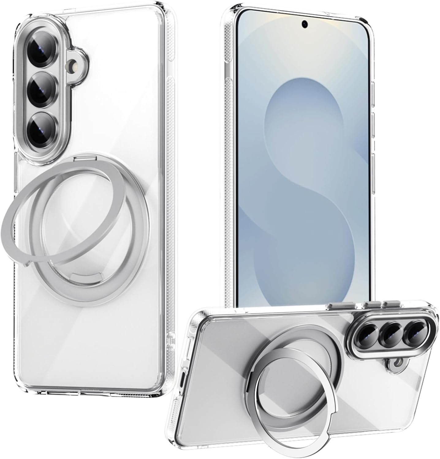 Powerful Magnetic AlignmentInstant Snap-on: Built-in strong magnets automatically align with wireless chargers for a faster, seamless charging experience.Secure Attachment: Locks firmly onto magnetic car mounts and wallets, ensuring your phone stays in place even on bumpy roads.360° Rotatable Ring StandVersatile Viewing: The foldable metal ring rotates to prop up your phone in portrait or landscape mode—perfect for video calls or streaming.Finger Grip: Doubles as a secure ring holder, giving you extra stability for one-handed texting and selfies.Enhanced Non-Slip ControlTextured Edges: Designed with tactile side dots (micro-texture) to provide a solid, confident grip and reduce accidental slips.Skin-Friendly Finish: The matte back panel resists fingerprints, sweat, and oil, keeping your case looking clean and premium.Everyday Shock ProtectionImpact Cushioning: Reinforced corners and a flexible frame help absorb shock from daily drops and bumps.Surface Guard: Raised bezels around the camera and screen create a protective gap to prevent scratches on flat surfaces.What’s in the Box1 × Magnetic Ring Stand Phone Case