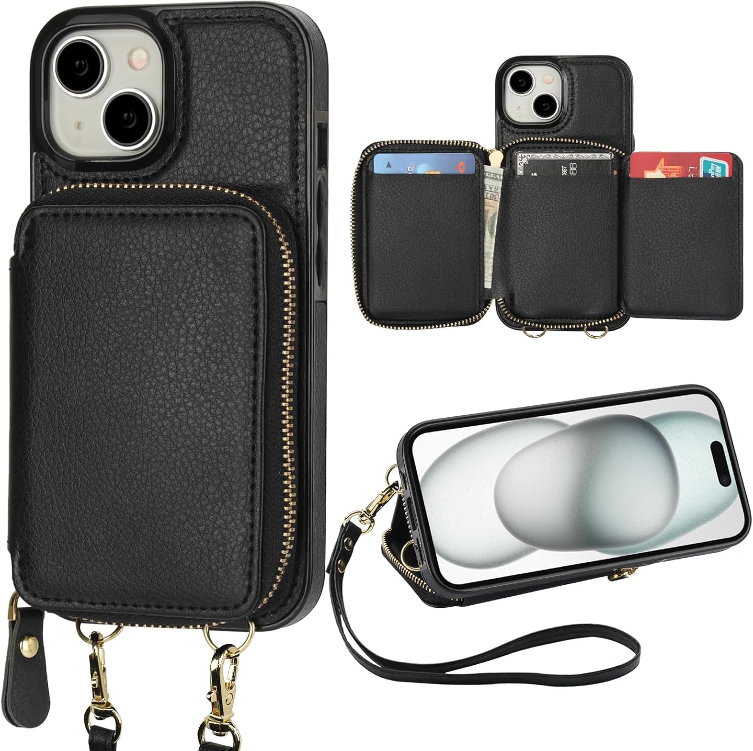 Color: Black, Brown, Rose Gold. (1) This case wallet for MagSafe is only compatible with iPhone 15 (6.1 Inch display, 2023 Released). NOT fit for any other phone models. Please check your phone model before placing an order. (2) The built-in Magnets in this crossbody case with card holder are for MagSafe so that you don't need to take off the wallet case from your phone when charging wirelessly. The wallet part on the purse case can be used as a stand with adjustable angles. (3) The 4 card slots of this purse wallet case with strap can contain little cash and your cards like ID card, credit cards, driver's license, and so on. And the zipper closure can effectively keep your belongings inside. (4) There are 2 straps in this case with wallet for Mag Safe. An adjustable and detachable shoulder strap can make it to hang your phone on your neck while a removable anti-lost wristlet allows you to hang your phone on your wrist. (5) The RFID shielding material on our cross body wallet case can effectively prevent the data in the chips of your cards from being read and copied through radio signals by RFID technology. (6) Raised edges can protect your screen from daily drops.