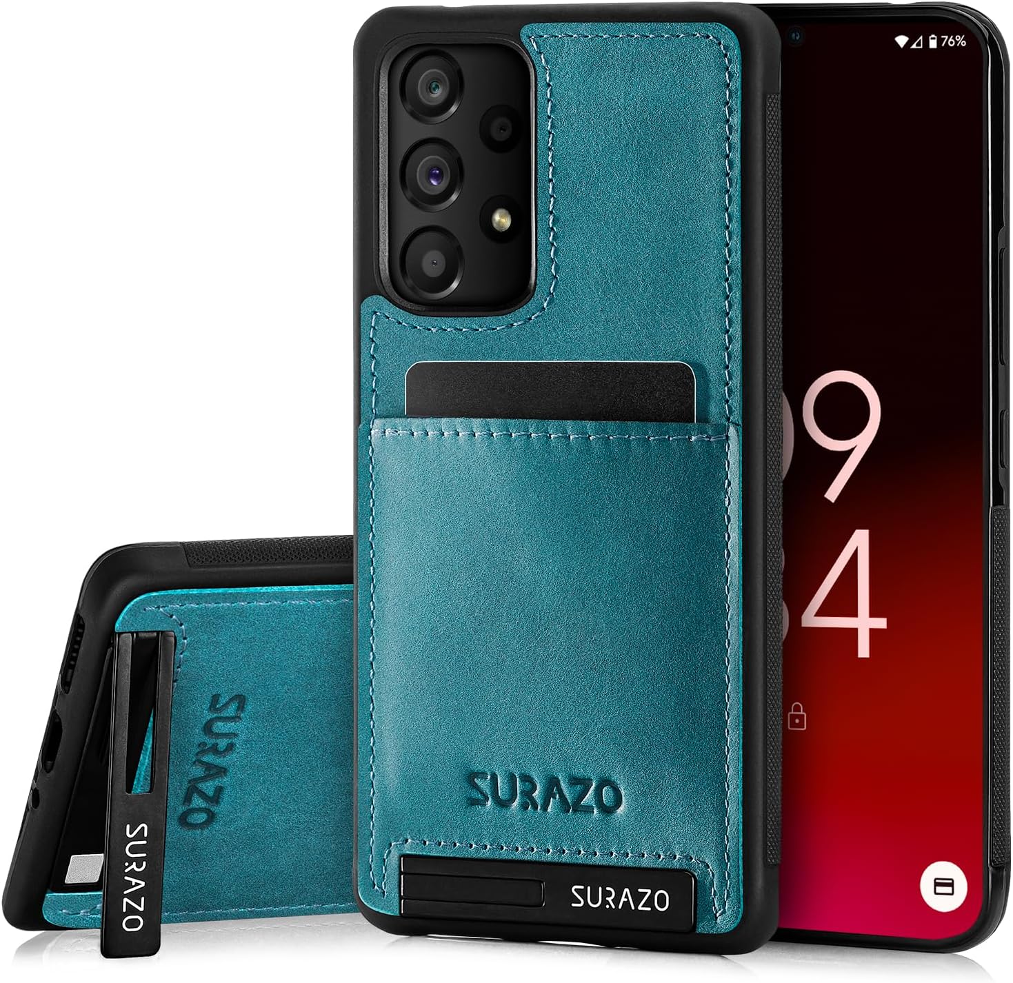 Brand: SURAZO Finish Type: Matt Condition: New Outer material: 100% genuine leather (with floral print). Mount: black hybrid TPU (matte and unbreakable). Compatibility: This genuine leather bumper case has been designed only for the Samsung Galaxy A53 (6.5 inches). SURAZO leather case has the necessary holes and cut-outs for all ports, buttons, speakers and camera. HIGH QUALITY: SURAZO back case is made from selected, high quality European natural leather. This product does not contain any cheap imitation leather, e.g. B. "PU leather". The outside of the case is made from high-quality 100% nubuck leather. This leather is characterised by a beautiful and unique ornamental pattern printed on the entire surface. Handmade in the EU: SURAZO genuine leather cover has been handmade by an experienced and trained group of craftsmen in Europe. Practical design: This product is more than just a simple phone case. Special compartment for credit cards and business cards, this case is very convenient for everyday use. In addition, this case also has a special stand function. Thanks to this function, you can see the pictures and video in horizontal position. ---- Package includes: 1 x mobile phone case compatible with Samsung Galaxy A53 5G. 1 x Genuine Leather Keyring Note: The texture of each product is unique due to the genuine leather, so the case may differ slightly from those shown in the pictures. The actual colour of the product may also vary slightly from the pictures in the description due to differences in the settings of your monitor/display.