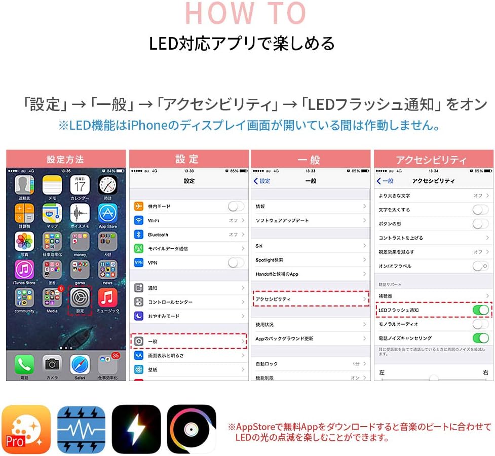 LINE FRIENDS "Line Friends Light Up Case" is a case that projects the light of your iPhone LED flashlight from the writing sheet handle. This is a cute case that combines LINE FRIENDS and illumination. Case illuminates with LED flashlight. The illumination case can project the light of your iPhone LED flashlight from the handle of the case. Even when you have incoming calls or emails or notifications such as SNS and other notifications in the manner mode will be enjoyable. No batteries or batteries required. Delicate carving writing sheet The pattern carved out is delicately finished using unique technology. When the LED light passes through the writing sheet, the image will be more gorgeous. Line Friends and illumination combination. The light pattern appears in the LINE FRIENDS illustration, and the illumination makes the case look gorgeous. Enjoy using the LED compatible app. LED Flash Notification Function: You can even enjoy the illumination case with the compatible app. Download the free App "Sound Strobe", "Music Strobe", "Flash mob", "Disco Lightning Pro" and more from the AppStore, and you can enjoy the LED light flashing according to the music beat. ● How to set the iPhone LED Turn on Settings → General → Accessibility → LED Flash Notifications The LED function will not work while the iPhone display screen is open. Product specifications and design may change without prior notice for improvements.