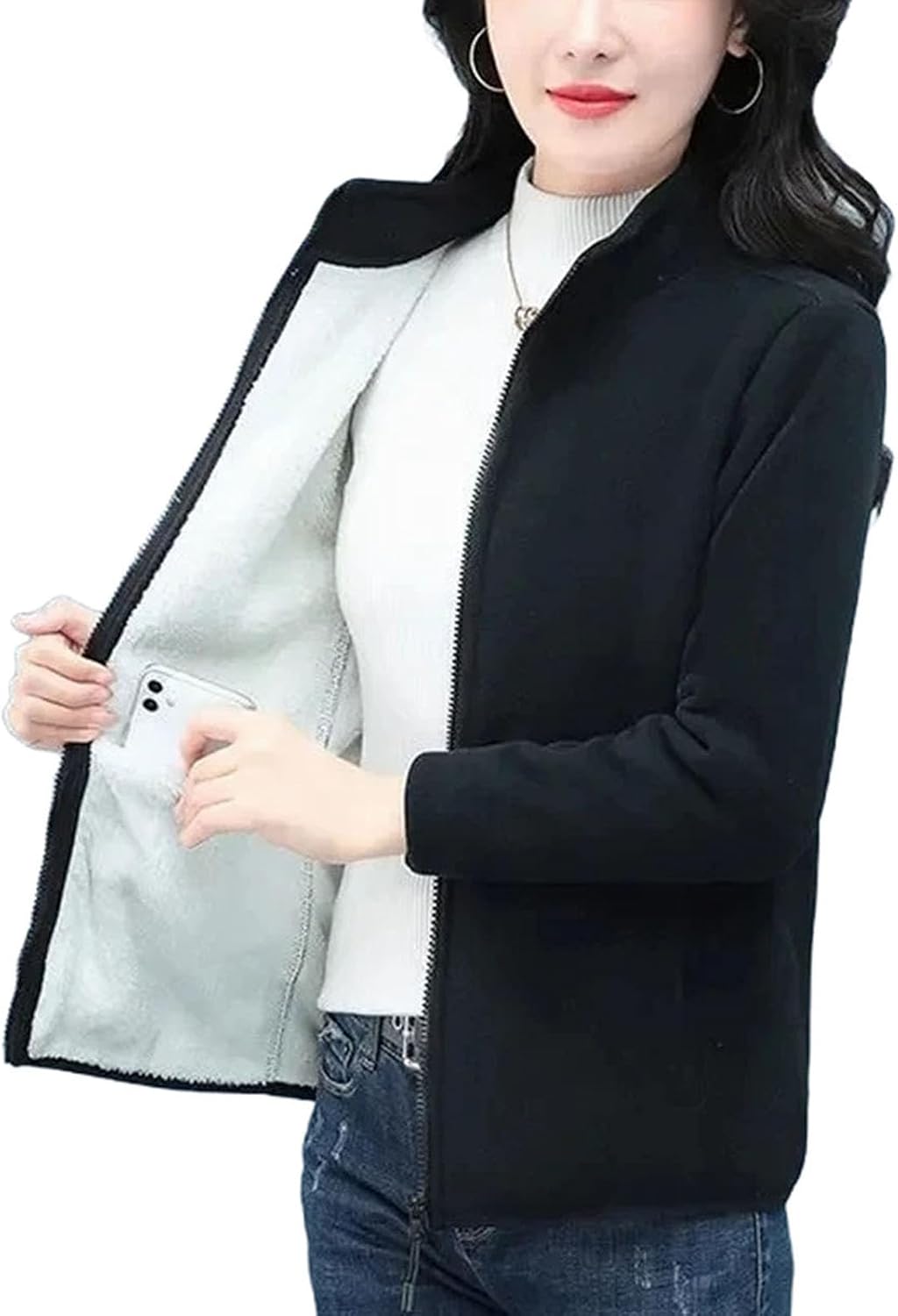 Closure Type: Zipperwhether full opening: YesHign-concerned Chemical: NoneCraft of Weaving: TattingDecoration: PocketsSeason: Autumn/WinterThickness: ThickAge: 25-35 YearsFabric Weight: Medium (Fabric Weight 120–220 g/m²)Hooded: NoCollar: Half High CollarSleeve Style: regularType: ZIP-UPPattern Type: SolidClothing Length: Short (4 - 16 Inch)Sleeve Length(cm): FullFabric Type: BroadclothStyle: CasualMaterial: COTTON,POLYESTERGender: WomenOrigin: Mainland ChinaItem Type: HOODIESElasticity: Non StrechFit Type: Slim