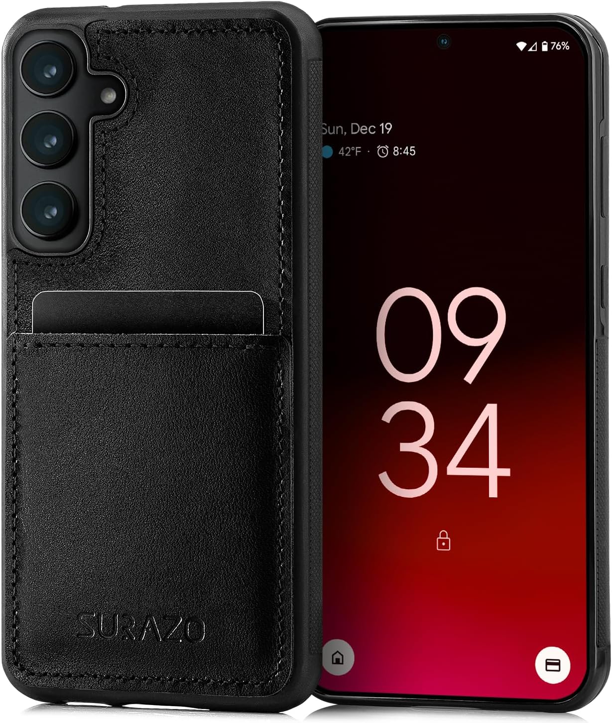 Brand: SURAZO Finish Type: Matt Condition: New Outer material: 100% genuine leather (with floral print). Mount: black hybrid TPU (matte and unbreakable). Compatibility: This genuine leather bumper case has been designed only for the Samsung Galaxy S24 (6.2 inches). SURAZO leather case has the necessary holes and cut-outs for all ports, buttons, speakers and camera. HIGH QUALITY: SURAZO back case is made from selected, high quality European natural leather. This product does not contain any cheap imitation leather, e.g. B. "PU leather". The outside of the case is made from high-quality 100% nubuck leather. This leather is characterised by a beautiful and unique ornamental pattern printed on the entire surface. Handmade in the EU: SURAZO genuine leather cover has been handmade by an experienced and trained group of craftsmen in Europe. Practical design: This product is more than just a simple phone case. Thanks to a special stand function, this case is very practical for everyday use. Thanks to this function, you can see the pictures and video in horizontal position. ---- Package includes: 1 x mobile phone case compatible with Samsung Galaxy S24 5G. 1 x Genuine Leather Keyring Note: The texture of each product is unique due to the genuine leather, so the case may differ slightly from those shown in the pictures. The actual colour of the product may also vary slightly from the pictures in the description due to differences in the settings of your monitor/display.