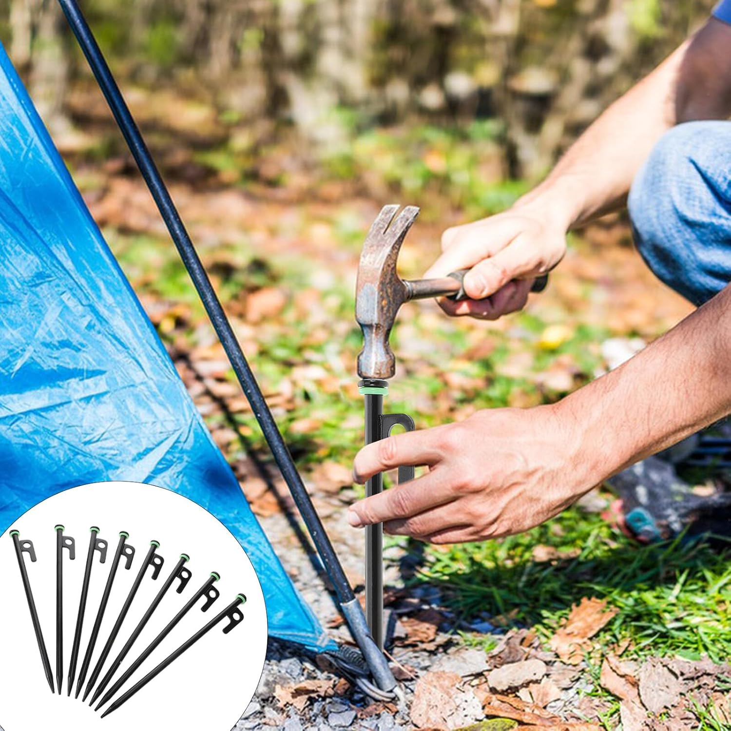 Package List 8 x pegs 8 x circles 1 x storage bag Characteristics -Nighttime visibility: the glow ring feature ensures that these stakes are easily visible in lowlight conditions, making nighttime setup and adjustments more convenient heavy duty ground stakes -Material:Carbon Steel -Durable steel material: constructed from sturdy steel, these tent stakes are designed to resist fade and provide performance -Versatile outdoor applications: ideal for camping, beach outings, and night fishing, these stakes provide reliable anchoring on a variety of ground surfaces glow ring camping stakes -Multiterrain performance: suitable for use on sandy beaches, hardpacked campsites, and other ground types, these stakes are a versatile addition to your outdoor gear tent anchors -Color:Assorted Color -Product Info:Tent floor nails -Heavyduty and elongated design: the thickened and elongated design offers holding power, ensuring your tent or canopy remains securely anchored in all conditions yard stakes -Size:25.00X3.00X1.50cm/9.82X1.18X0.59inGoods Descriptionground anchors screw in The glow ring ensures you can easily find and adjust the stakes in the dark, making your outdoor experience safer and more enjoyable.outdoor adventure tent pegs practical for camping, beach trips, and night fishing, these steel stakes provide a secure anchor for your tent or canopy.durable tent pegs Simply hammer the stakes into the ground for a reliable hold.metal garden stakes Our glow ring tent stakes are designed for enhanced visibility and durability
