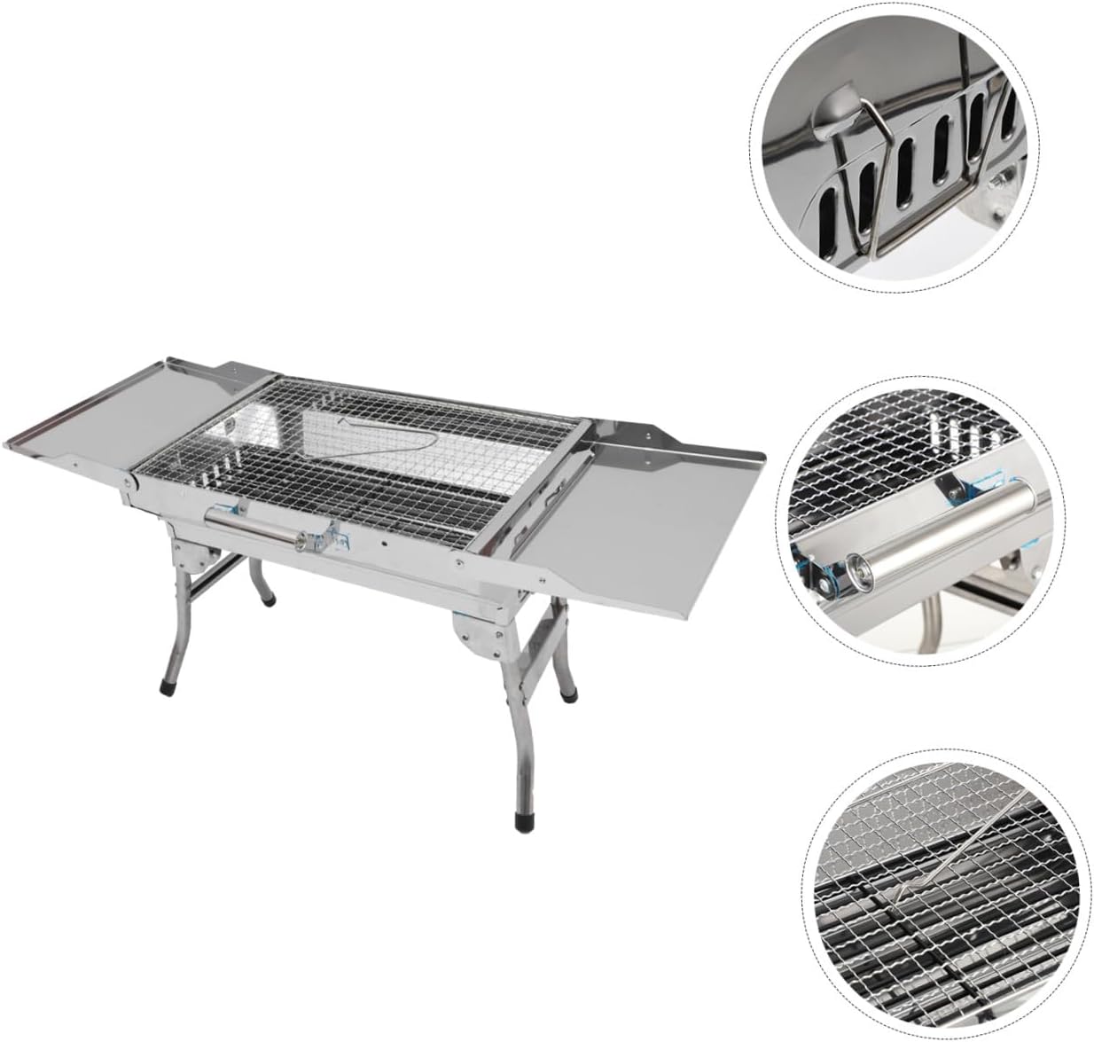 Package Include 1 x stainless steel grill Features - Size: About 82.00X35.00X30.00cm/32.23X13.76X11.79inch Camping Barbecue Grill. - Color: Silver Simple Grill Rack. - Material: Stainless steel Foldable Grill. - Suitable for outing barbecue activities such as camping, garden party and more Outdoor BBQ Rack. - Lengthen the seasoning board, you can put more seasonings and ingredients Outdoor Portable Grill. - This product is made of material and designed as a foldable structure Small Barbecue Grill. - It can be easily expanded and used. It is small in size after shrinking, convenient to carry Multi-purpose Outdoor Grill. - Using charcoal as the burning material, it is suitable for outdoor leisure barbecues and also suitable for home use Outdoor BBQ Grill.Goods DescriptionSturdy Folding Grill Perfect for family garden party, picnic, camping use.Outdoor Portable Grill This multi-function foldable barbecue grill is made with quality stainless steel material, high durability, extremely durable and super practical.Camping Barbecue Grill Wonderful barbecue grill for outdoor use