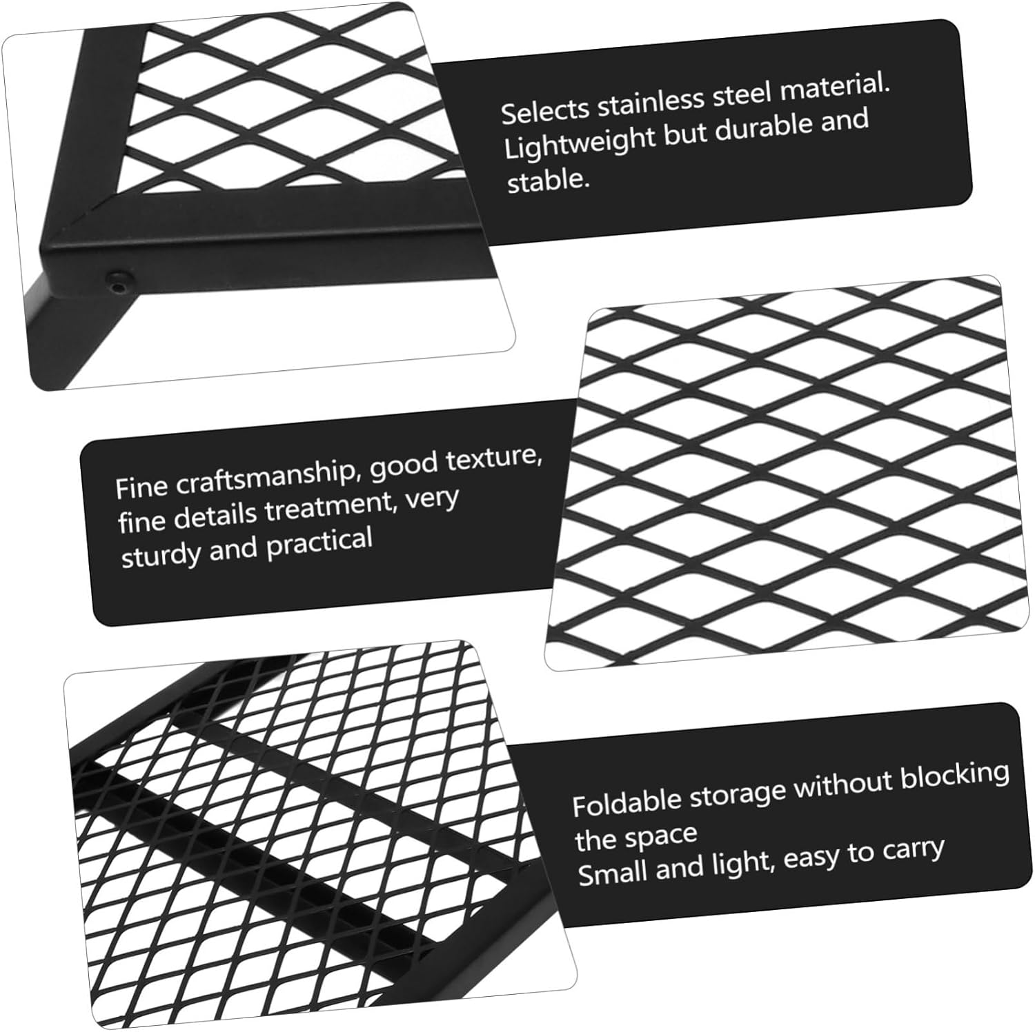 Package List 1 x grill Characteristics -Material: Stainless steel Anti-rust Grill. -Color: Black Barbecue Rack. -Size: About 85.50X41.00X25.50cm/33.60X16.11X10.02inch Useful Camping Tool. -It is a as a for people who like BBQ, they will like it very much Barbecue Grill. -It is suitable for outing barbecue activities such as camping, fishing and more Stainless Steel Grill. -The of stainless steel is assured, and the selection of food-grade material is safe and durable Foldable Grill. -The design is simple and , and several foods can be grilled at the same time Grill for Beach. -The grill is heat-resistant and , easy to operate and easy to clean Portable Grill.Goods InformationStainless Steel has a reasonable structure design, is shiny, and uses food-grade materials, can use it with confidence.Portable is foldable and portable, easy to carry for outdoor picnic use.Stainless Steel Grill Are you looking for a but grill? Are you looking for a sturdy barbecue tool that is easy to clean? If so, please focus on this grill made of stainless steel