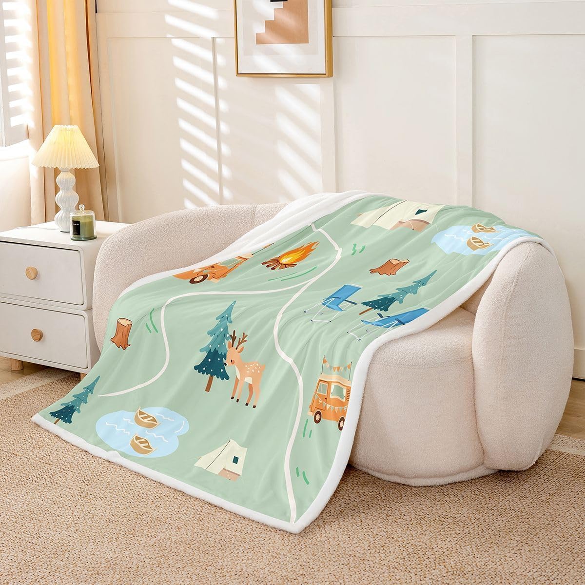Material: Sherpa microfiber Key Features: Lightweight construction with textured surface Available Size Options Applications: Baby (30"x40"): Compact for strollers, car seats, or infant care Small Throw (40"x50"): Ideal for couch use, daybeds, or outdoor activities Standard Throw (50"x60"): Versatile for bedrooms, guest rooms, or RV travel Twin (60"x80"): Fits most couches, sofas, and single beds Queen (90"x90"): Large coverage for master beds or sectional sofas Design Characteristics: Patterned design selections available Multi-season functionality Care Instructions: Machine wash cold (separate cycle) Hang dry recommended Do not use bleach
