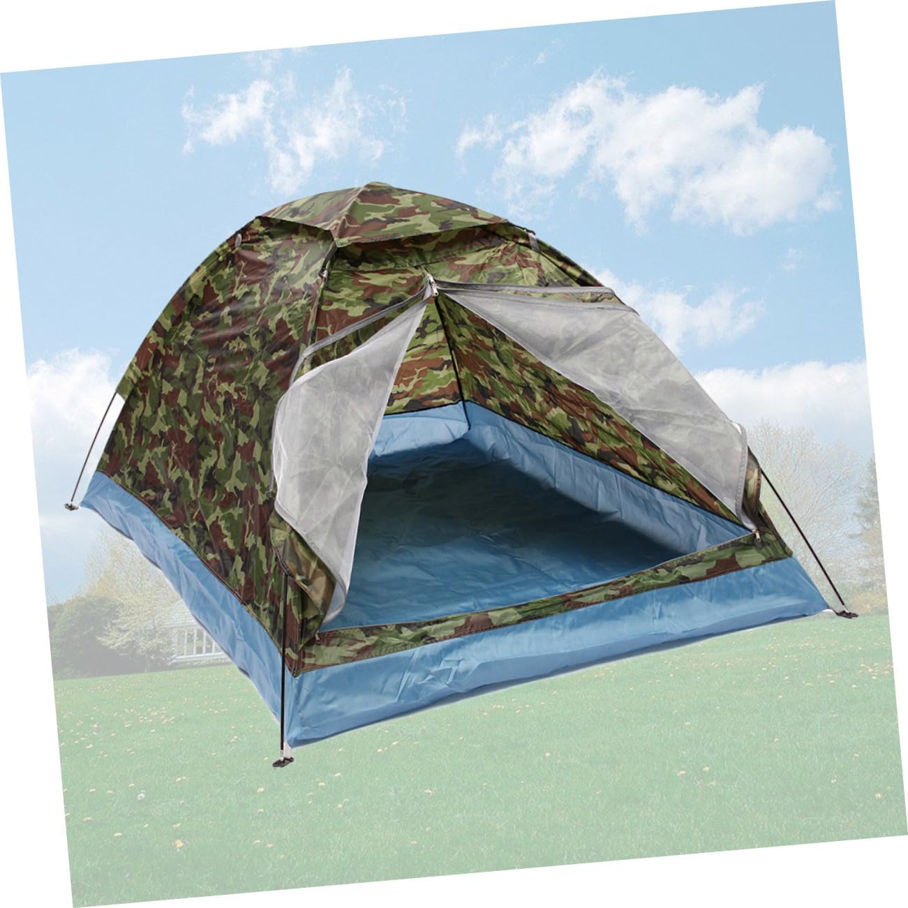 Package List 1 x outdoor tent Characteristics - Material: Fiber glass rod, oxford cloth double person tent. - Size: About 200 x 140 x 110cm Outdoor tent. -Product Info:Double tent - Pole material: glass fibre rods. Stong constuct and not east to break camping tent. - Fit double person outdoor camping perfectly. Buy one and eajoy hiking with grilfriend or family member Family Tent for Traveling. - Outgoing and easy to carry, out for the summer camouflage beach tent. - It features camouflage outlook, single layer, mesh door design. Good breathability and no odor. - - Ultra-light, picnic, fishing, water, . Metal ground nail and interior light hook, durable and practical tent for outdoor supplies.Goods Descriptiondouble person tent The folding tent contains double persons while you are outside with your family for traveling, camping and hiking.Outdoor tent Besides, it is outgoing and easy to carry for summer.Family Tent for Traveling It features camouflage outlook, single layer, mesh door design and suitable for picnic, fishing, water, , etc