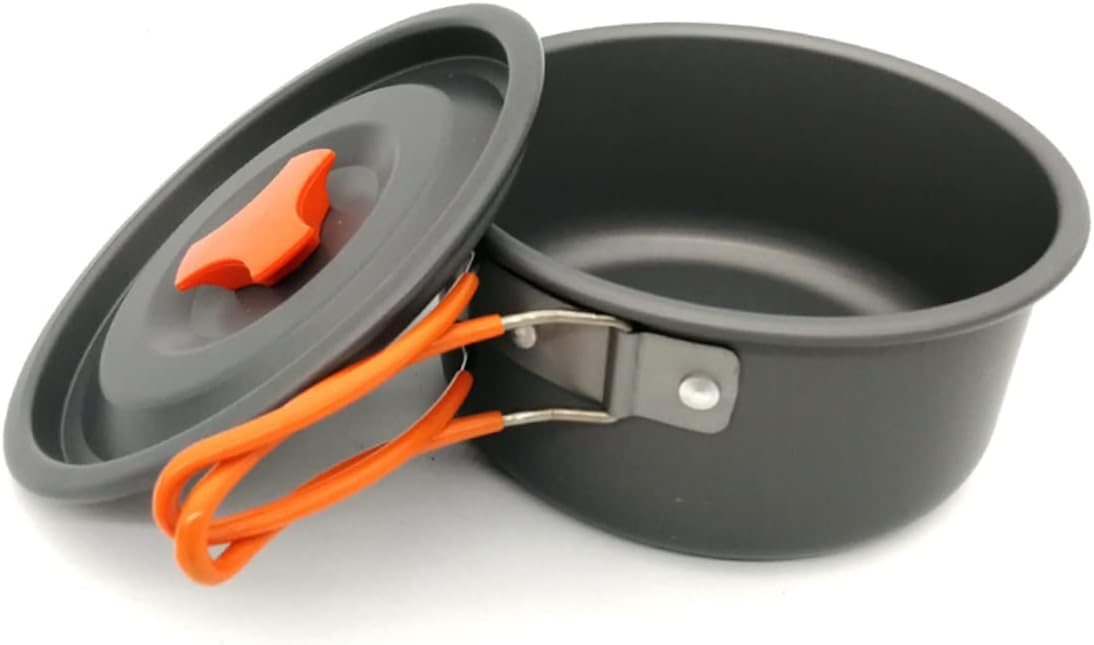 Package Include 1 x Pot 1 x Frying Pan 1 x Soup Scoop 1 x Dining Spoon 2 x Plastic Bowl Features -Pot Size: 14.00X7.00cm/5.51X2.76in camping cookware kit -Color: Assorted Color multi-function tableware for camping -Material: Aluminum Alloy portable camping cookware -Frying Pan Size: 15.00X4.00cm/5.91X1.57in camping cooking kit -It can also quickly transfers heat to deep fry and cook food in a short time camp cookware. -It's a time-saving cooking kit with a pot that not only resists high temperatures camp cooking kit. -This anodized aluminum alloy pot and frying pan make it easy to clean backpacking cookware. -Insulated plastic handles prevent burns from the heat camp cooking gear. -Each piece has a non-stick coating, which makes it easy to clean and camping tableware.Goods Descriptionbackpacking cookware It is a time saving cooking kit, pot not only can withstand high temperature, but also can quickly transfer heat to fry and cook food in a short time.camping cookware kit You can enjoy the perfect outdoor time with your family and friends with the help from this cooking utensil set