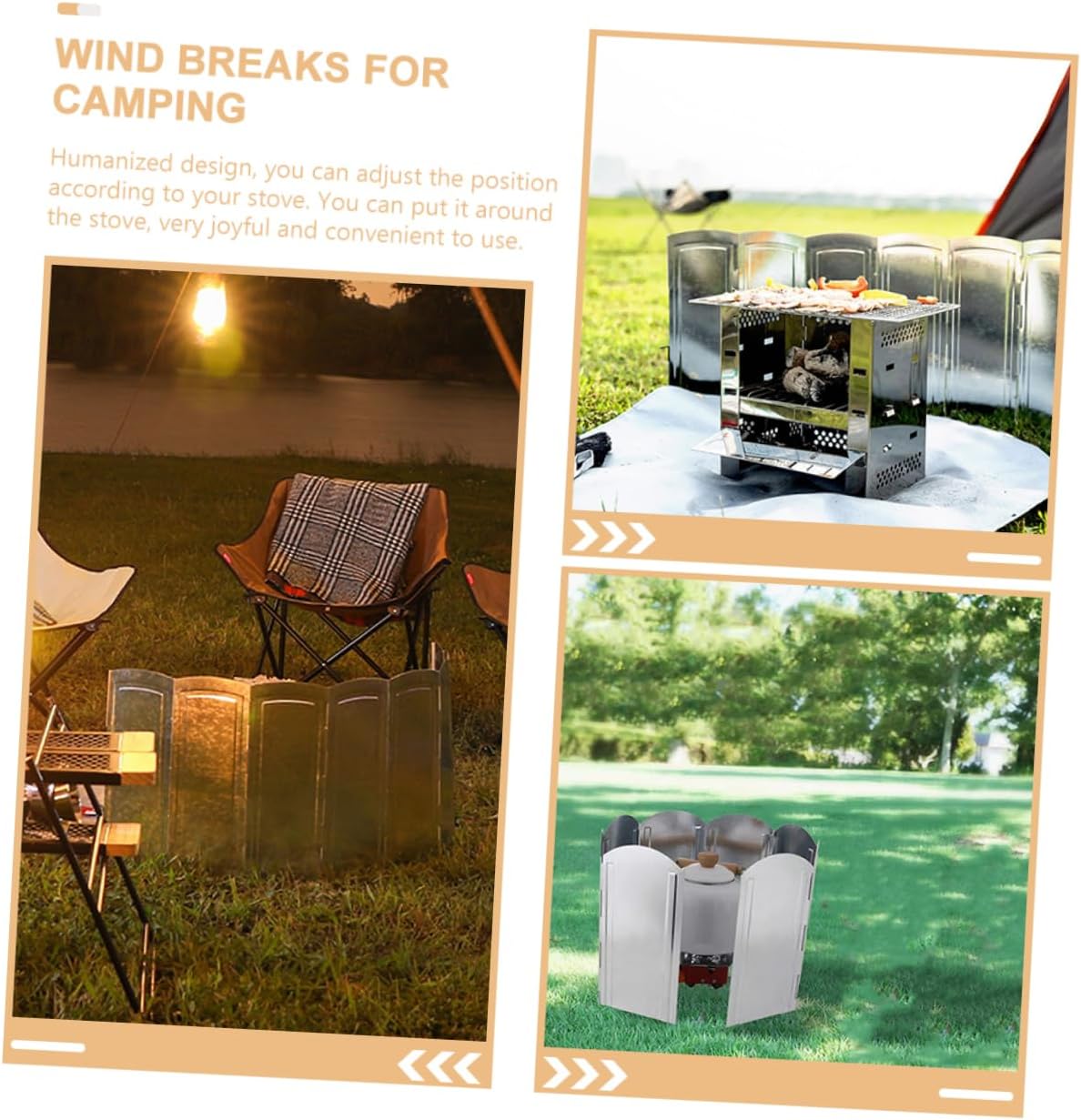 Package Include 1 x Set of Windshields(8 Sheets) 1 x Bag Characteristics -Size:120.00X30.00X0.30cm/47.16X11.79X0 cooking windproof. -Material:Galvanized plate camping windshield -Color:Silver foldable anti-wind tool - Made of galvanized plate, it can be used for a long time . Very practical windscreen for outdoor. - It has a simple design, but very practical in use, giving you a burner anti-wind tool. - The foldable design makes it convenient to carry and campfire windshield. - The for family and friends who like camping or picnic, they will like it. Can be disassembled at will, easy to carry folding burner windscreen. - Humanized design, you can adjust the position according to your stove. You can put it around the stove, very joyful and convenient to use camping wind blocker.Goods Descriptioncooking windscreen With a stable and convenient design, this stove windshield can be folded for easy to carry.portable windproof This is a good helper for outdoor camping.anti-wind tool for stove A portable camping stove windshield, which is made of stable metal, can be used for a long term