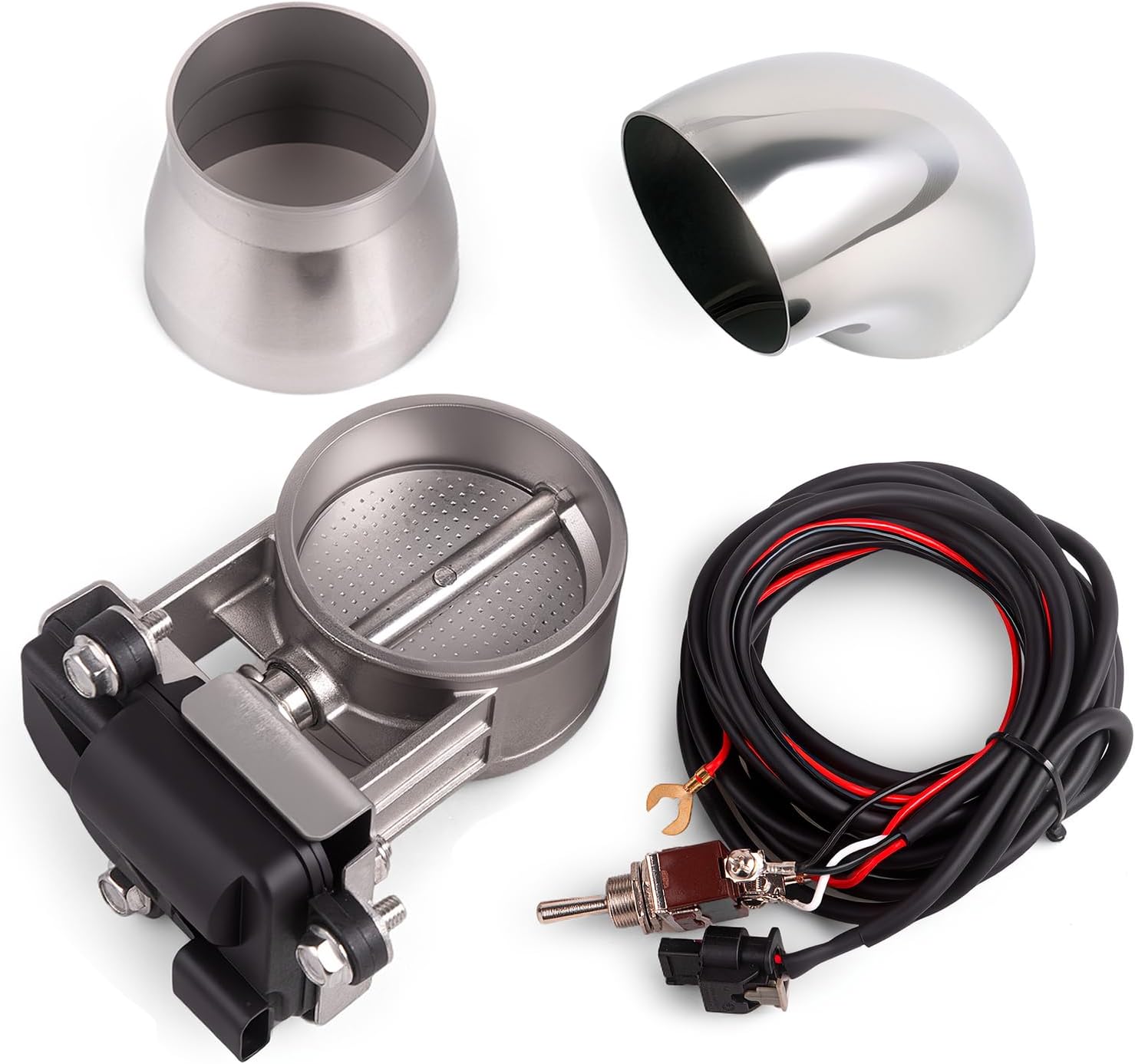 Including:1*Electric Cutout Valve1*2.5"x2" Reducer Pipe1*2.5" Elbow Muffler1*Toggle switch(Cable Length:13ft)Feature:Note: Not compatible with remote-controlled electric shut-off valves, as they utilize different motor models.Made of Stainless SteelSwitch Parameters:15A,250VACThe valve is CLOSE at free conditionRod end bearing linked between moter and gate leverPlease make sure your all dimensions before place orderRequires welding for a secure fit, ensuring a professional finish to your exhaust systemProfessional installation is strongly recommended