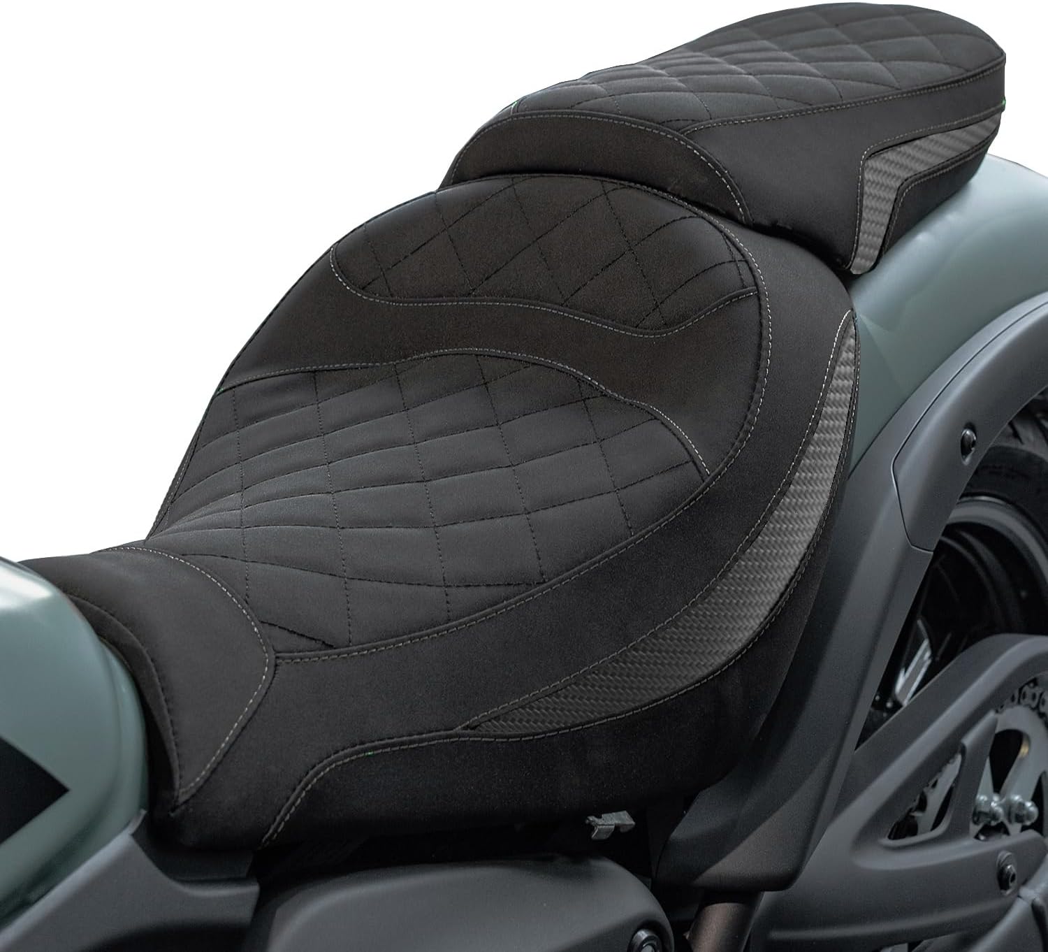 Product Name: Motorcycle Rider Solo Saddle Passenger Seat Cushion Pillion Pad Compatibility: Compatible with Vulcan S 650 2015 2016 2017 2018 2019 2020 2021 2022 2023 2024 202 20265 Compatible with EN650 EN 650 2015 2016 2017 2018 2019 2020 2021 2022 2023 2024 2025 2026 Compatible with VN650 VN 650 2015 2016 2017 2018 2019 2020 2021 2022 2023 2024 2025 2026 Specification: Material: PU Leather+ABS Plastic+Sponge Condition: Aftermarket 100% Brand New Color: Black, Green (Optional) Front Driver Saddle: Approximately 19.9" x 13" (48.5 x 33 cm) Rear Passenger Seat: Approximately 12.2" x 9.25" (31 x 23.5 cm) Position: Front & Rear Center Features: Easy To Install Fuction: Built-in Soft sponge, improve riding comfort for a long haul trip Packing List: 1 Piece Front Rider Solo Seat Saddle 1 Piece Rear Passenger Seat Cushion Pad Note: 1. Please compare the size with your original seat cushion carefully before purchasing. 2. Easy to install, but professional installation is highly recommended. 3. Please allow 1-2 cm error due to manual measurement. 4. Our digital images are as accurate as possible. However, different monitors can cause colors to vary slightly.