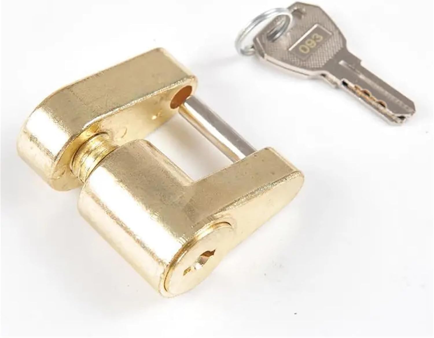 Hardware / LocksSpecification:Material: Zinc AlloyColor: Gold,BlackSize: 4.4*4.6cmFeature:Made of high-strength steel to deter theft.1/4 Inch diameter tongue lock pin with effective length 3/4 Inch.Spinning the flat key 5-7 times to open or close the hitch lock.The hitch lock is coated with black electrophoretic paint to corrosion.Used for tow trailer boat RV truck car.Fine workmanship and good Easy to use.Long service life.Notes: 1. Please understand there may be mild deviation exist. 2. Due to the lighting and monitors, there are slight differences between the picture and the real item. Package Content: 1pc x Trailer Hitch Coupler Lock2pcs x Keys