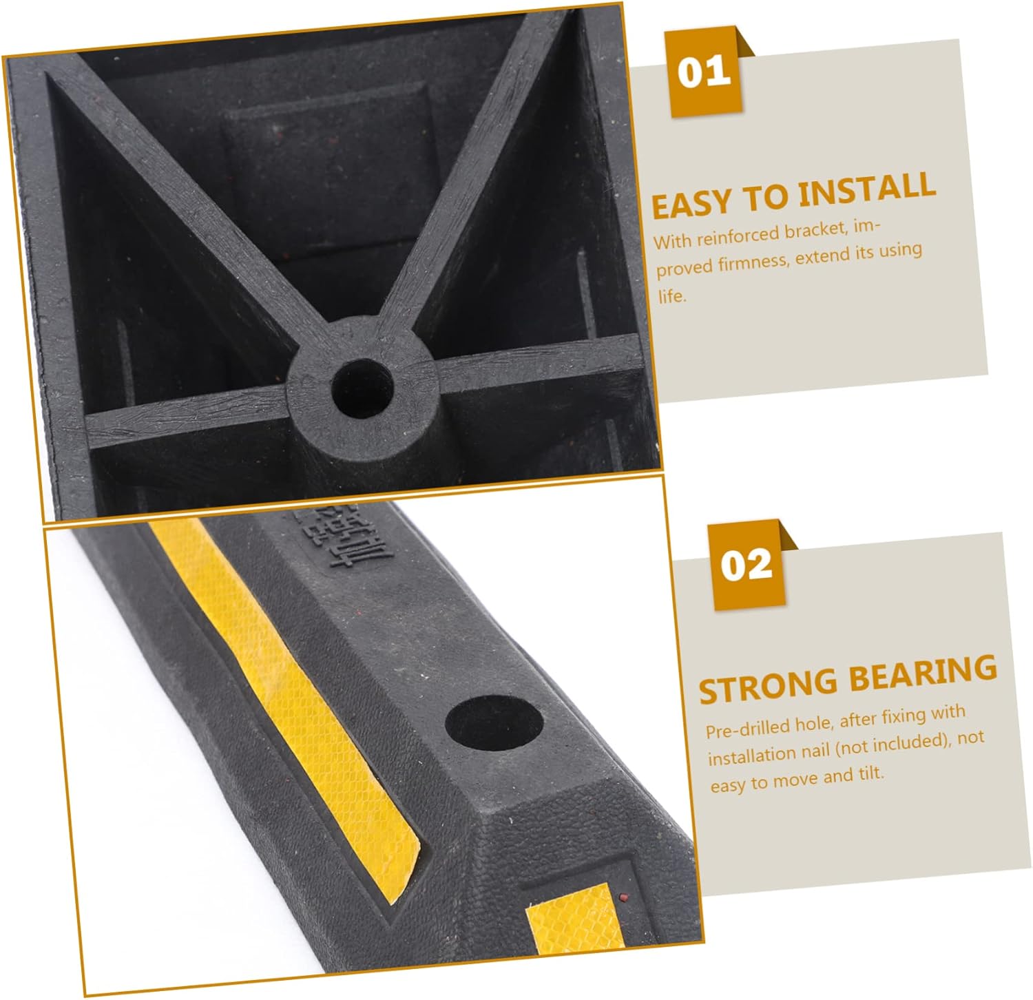 Package Include 1 x parking block 2 x bolts Features -Color: Black garage accessories -Size: 50.00X14.00X7.80cm;/19.65X5.50X3.07in; Stopper for Truck -Material:Rubber Curb - High brightness reflective film, higher visibility in both day time and night time car stoppers for garage. - Pre-drilled hole, after fixing with installation nail (not included), not easy to move and stopper. - It is widely used in school, underground parking lot, , shopping mall, and etc Wheel Stopper with Reflective Tape. - With reinforced bracket, improved firmness, extend its using life garage parking aid. - High strength rubber base, not easy to crack, strong bearing and strong anti pressure ability, longer service life garage car stopper.Goods DescriptionRubber Parking Curb Fine workmanship, ensures practicality.Car Garage Wheel Stopper Features the rubber material, which has high durability, not easy to deform.parking stopper for garage This car parking block is made of , which can withstand long-lasting use