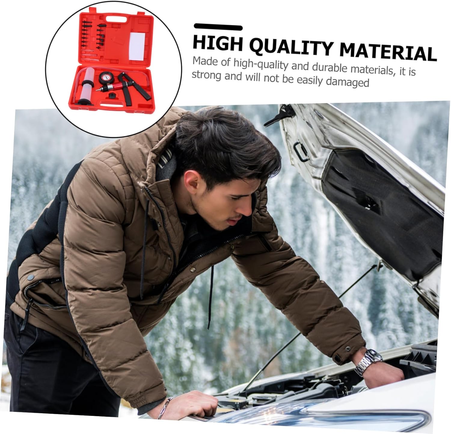 Package Include 1 x vacuum pump with precision gauge 2 x reservoir jars (with lids) 3 x short transparent hoses 2 x long transparent hoses 14 x adapters 1 x plastic packaging box Features - Material: ABS, rubber, aluminum alloy system. - Color: As shown Car Fluid Bleeding Set. - Size: About 2400X1850X380cm/943X727X149inch brake pressure bleeder. - There are different adapters in the oil change kit for various vehicles, suitable for both home and business auto. - bleeder kit has excellent seal and product performance, each component is closely pressure. - This brake and clutch system bleeding tools come with a storage case, easy to carry Brake Fluid Vacuum Pump. - Brake fluid tester equipped with vacuum gauge, easy to the pressure Car Brake Oil Change Tool. - Made of and materials, it is strong and will not be easily damaged ev.Goods InformationPump and Brake Bleeder Kit This pressure vacuum pump brake bleeder kit is a multifunctional car tools, which is used for a variety of automotive testing and diagnosis tasks.brake tools Such as the testing of engine, vacuum-operated mechanical components, fuel system, Ignition system, especially work for changing brake clutch fluid and power steering oil
