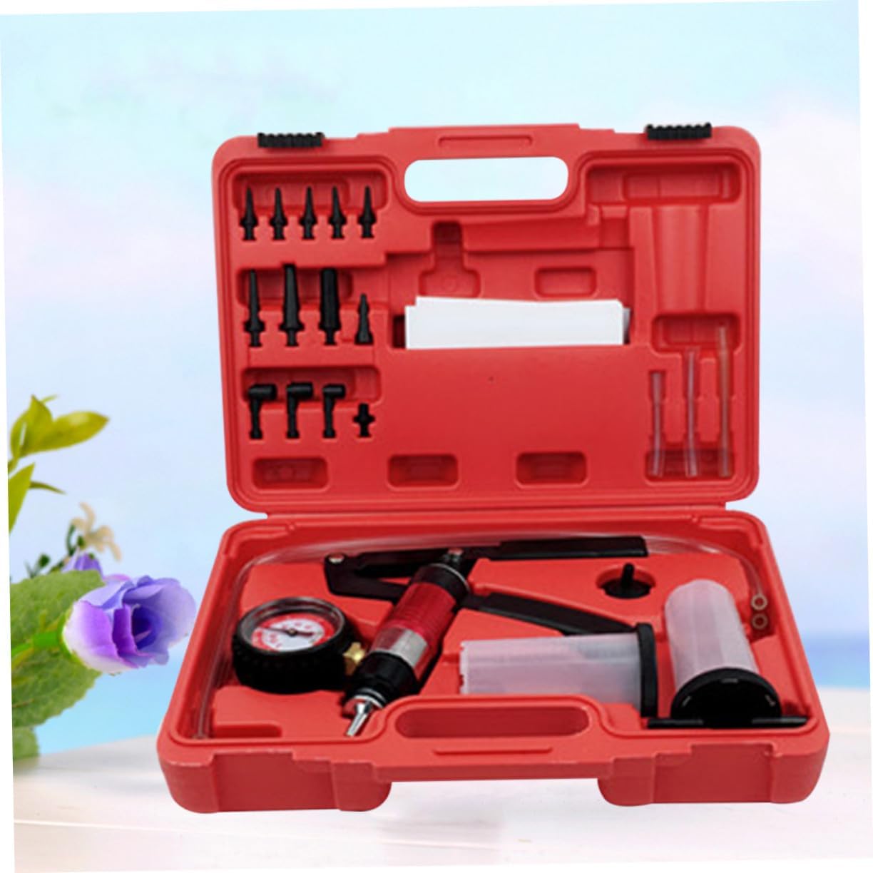 Package Include 1 x Hand-held Vacuum Pump Characteristics -Product Info:Manual vacuum pumpGoods InformationManual vacuum pump - Works on all vehicle makes and models.Hand-held Vacuum Pump fuel pumps, , etc.Vacuum Pump 5 x 27 x 7.steam protection tool - Comprehensive workshop vacuum pump kit includes reservoir and adaptor for brake and fuel line bleeding.Brake Bleeder Kit - The hand operated pump pulls the fluid through the bleed , eliminating need to use the brake lever or pedal. Manual pump with pressure gauge allows testing of many vacuum operated systems, . The hand operated pump pulls the fluid through the bleed , eliminating need to use the brake lever or pedal. fuel pumps, , Features - - Material: Alloy. Comprehensive workshop vacuum pump kit includes reservoir and adaptor for brake and fuel line bleeding. - Manual pump with pressure gauge allows testing of many vacuum operated systems, . - Size: 37. 5 cm. - Easily bleed brakes and test automotive vacuum systems by yourself